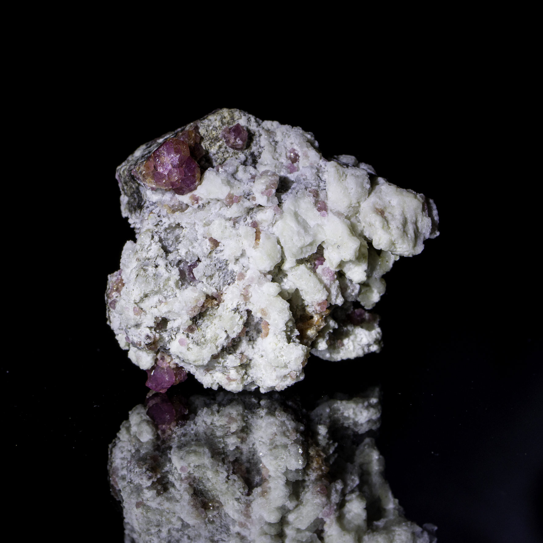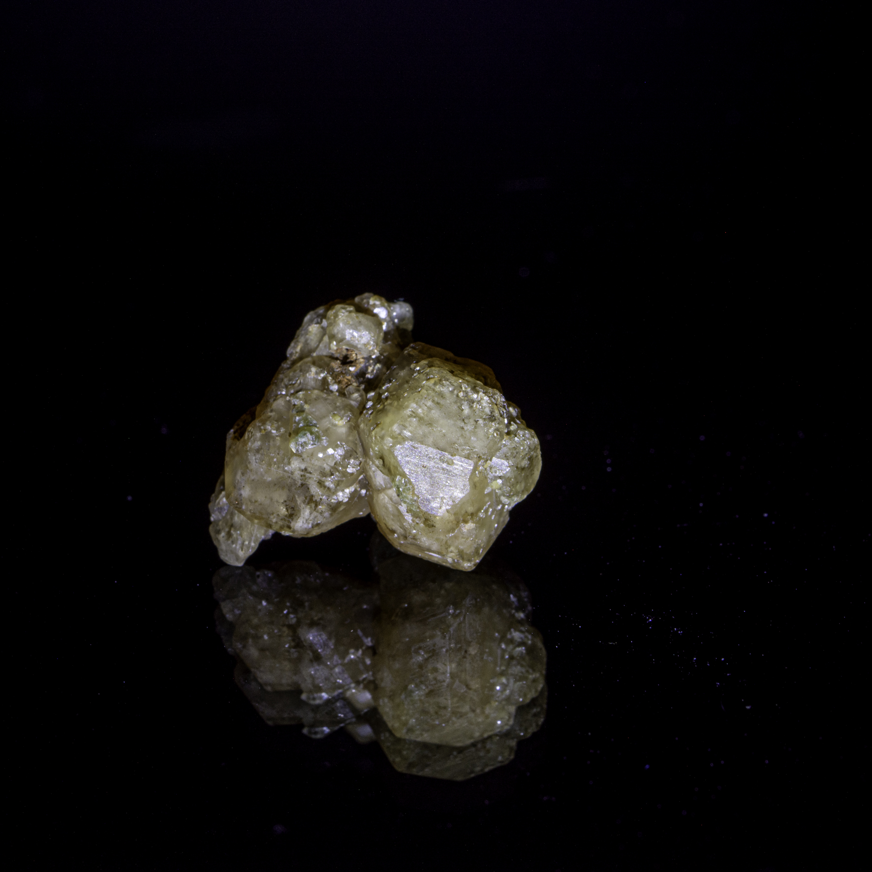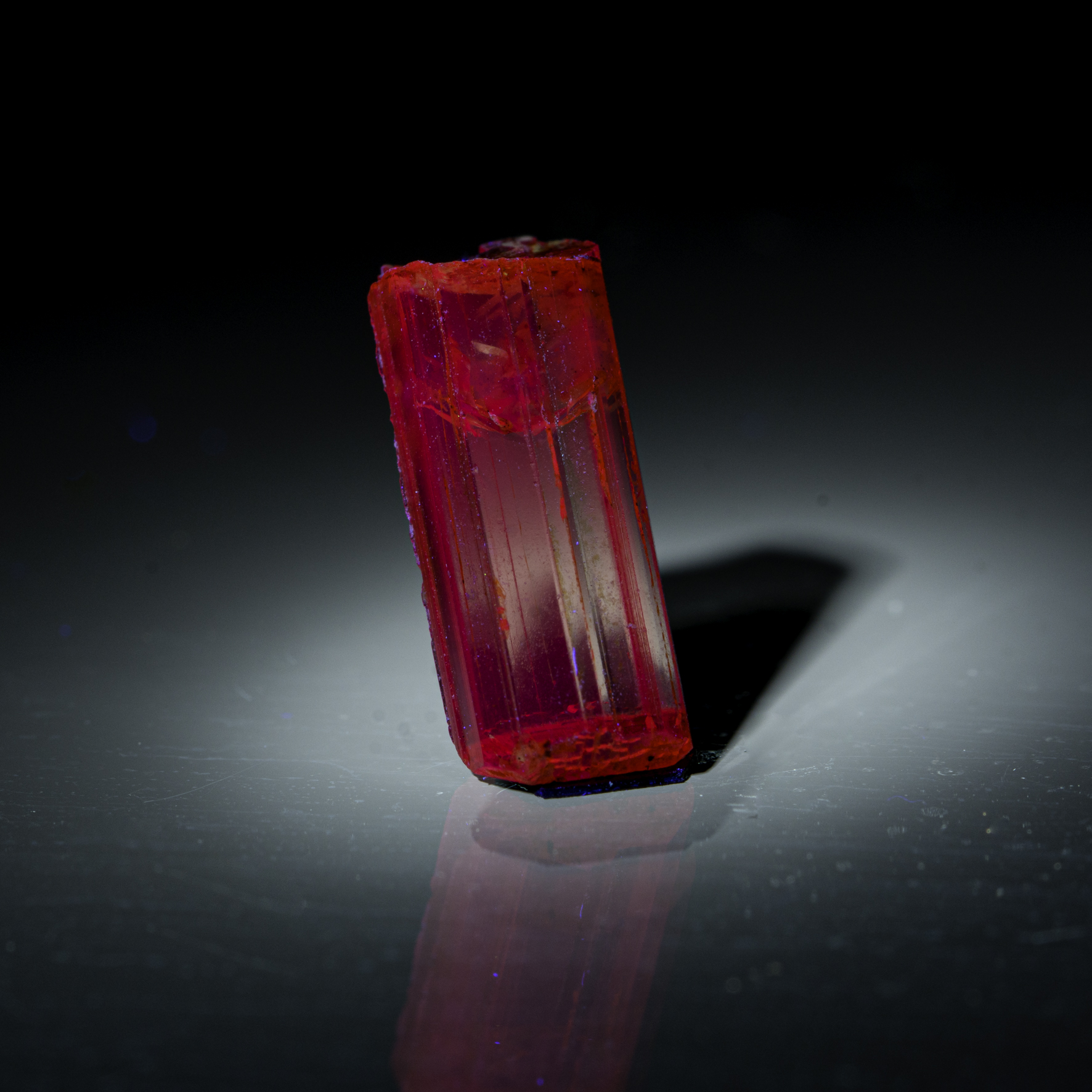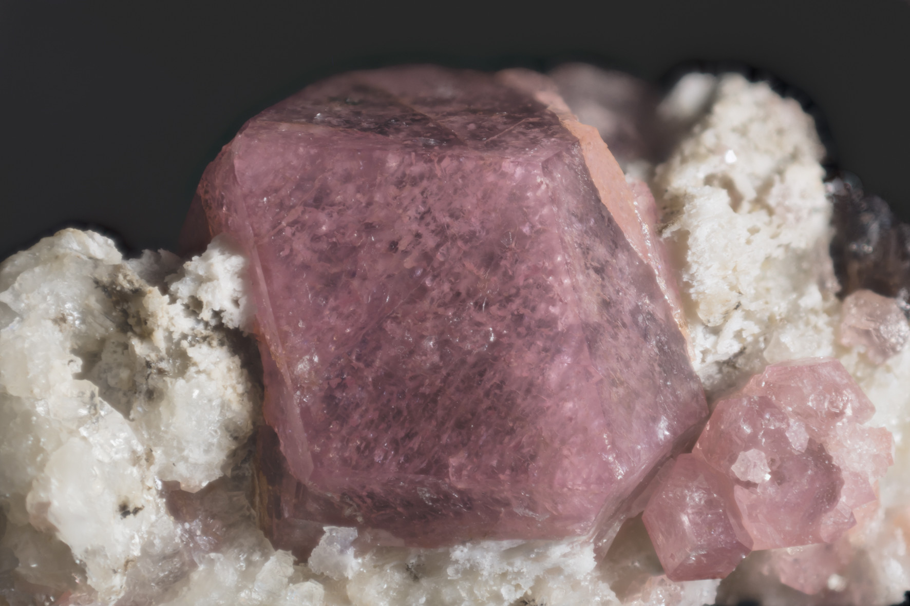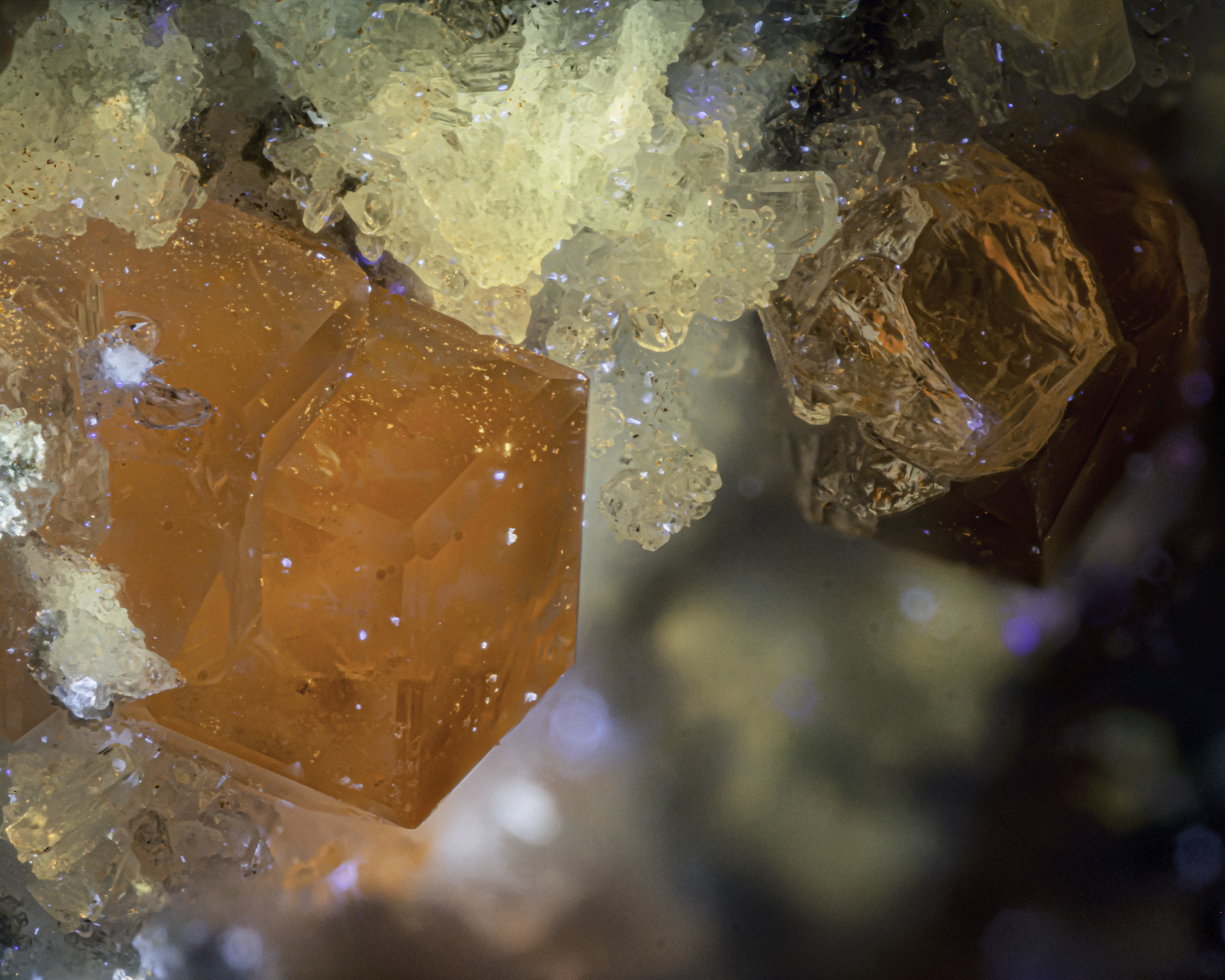 Grossular vom Stifle Claim. Dunkelrote Bereiche (Anregung 365nm) zeigen die oben genannte Emission der zero phonon line von Mn