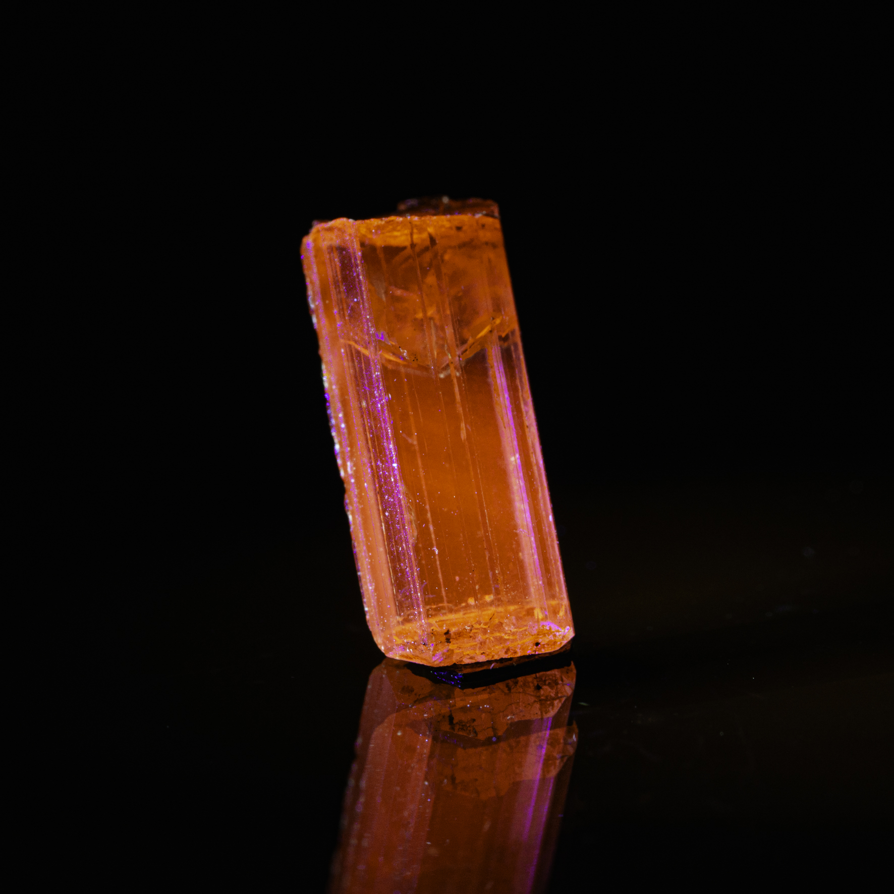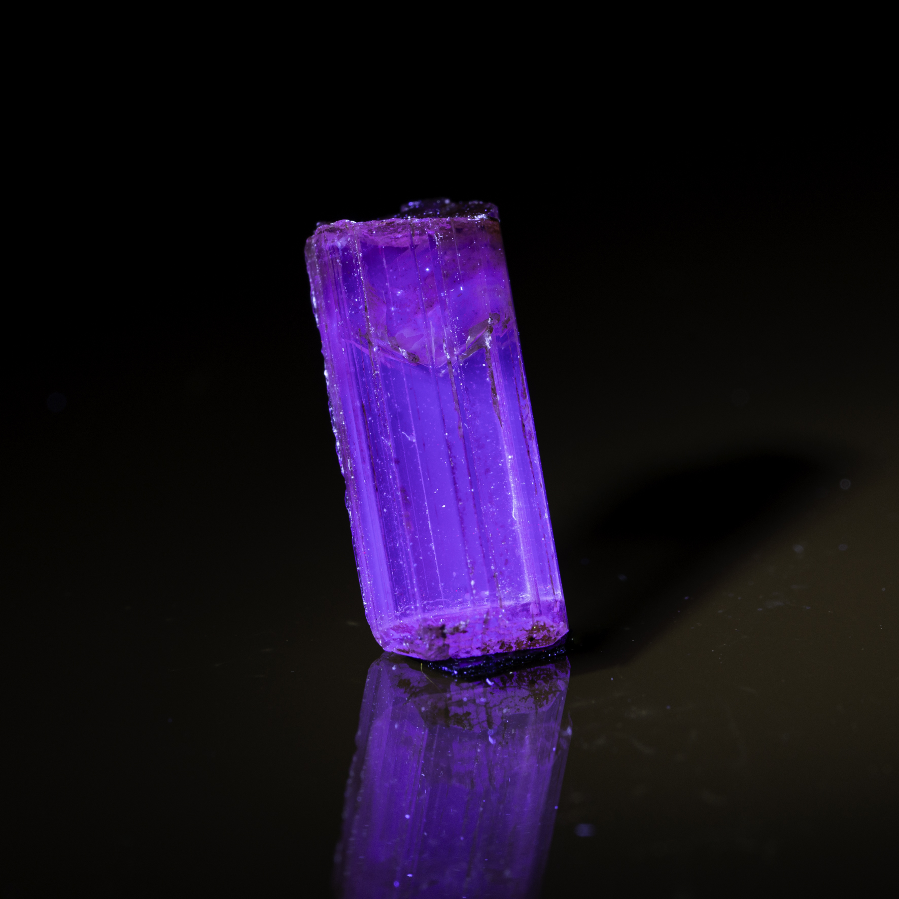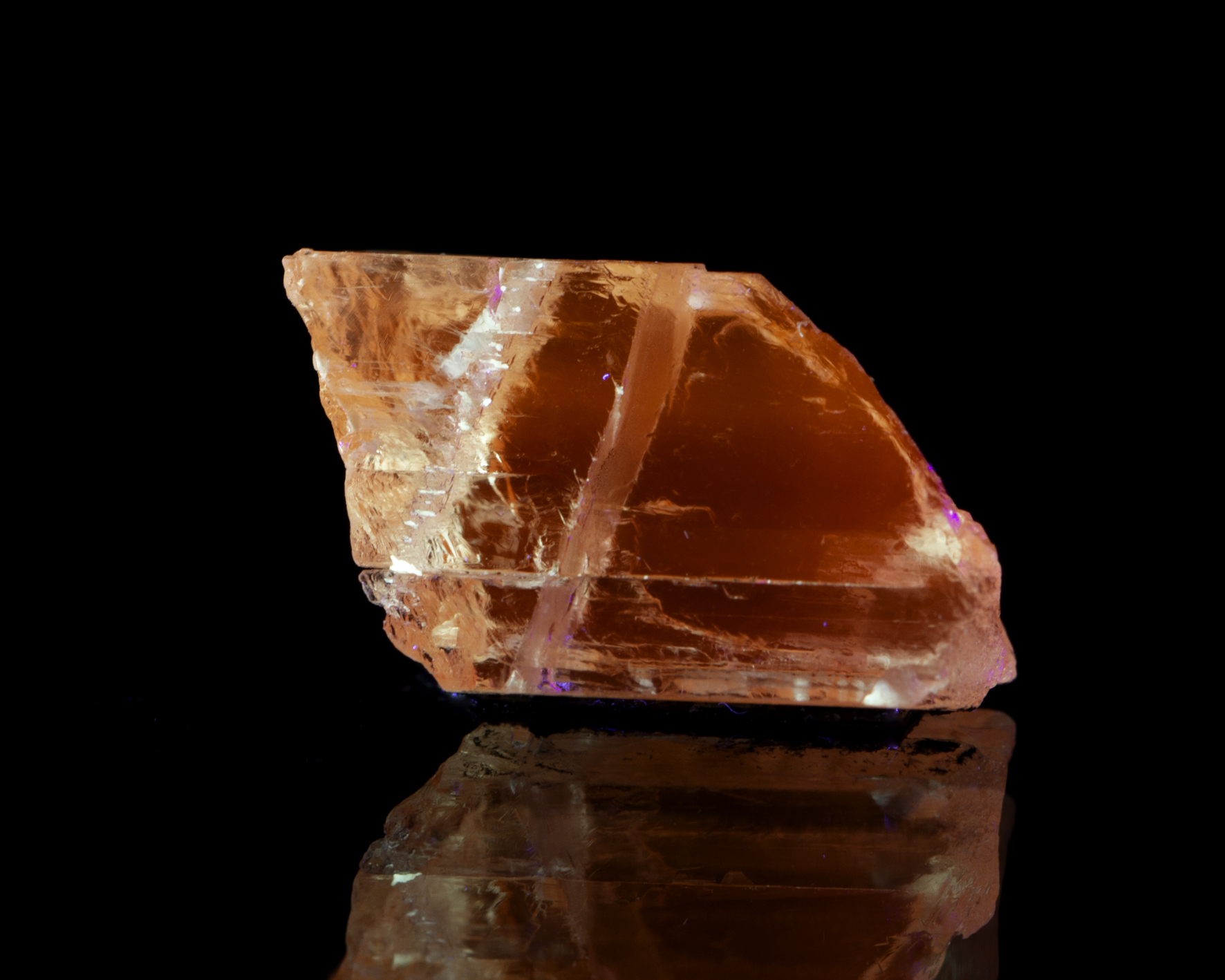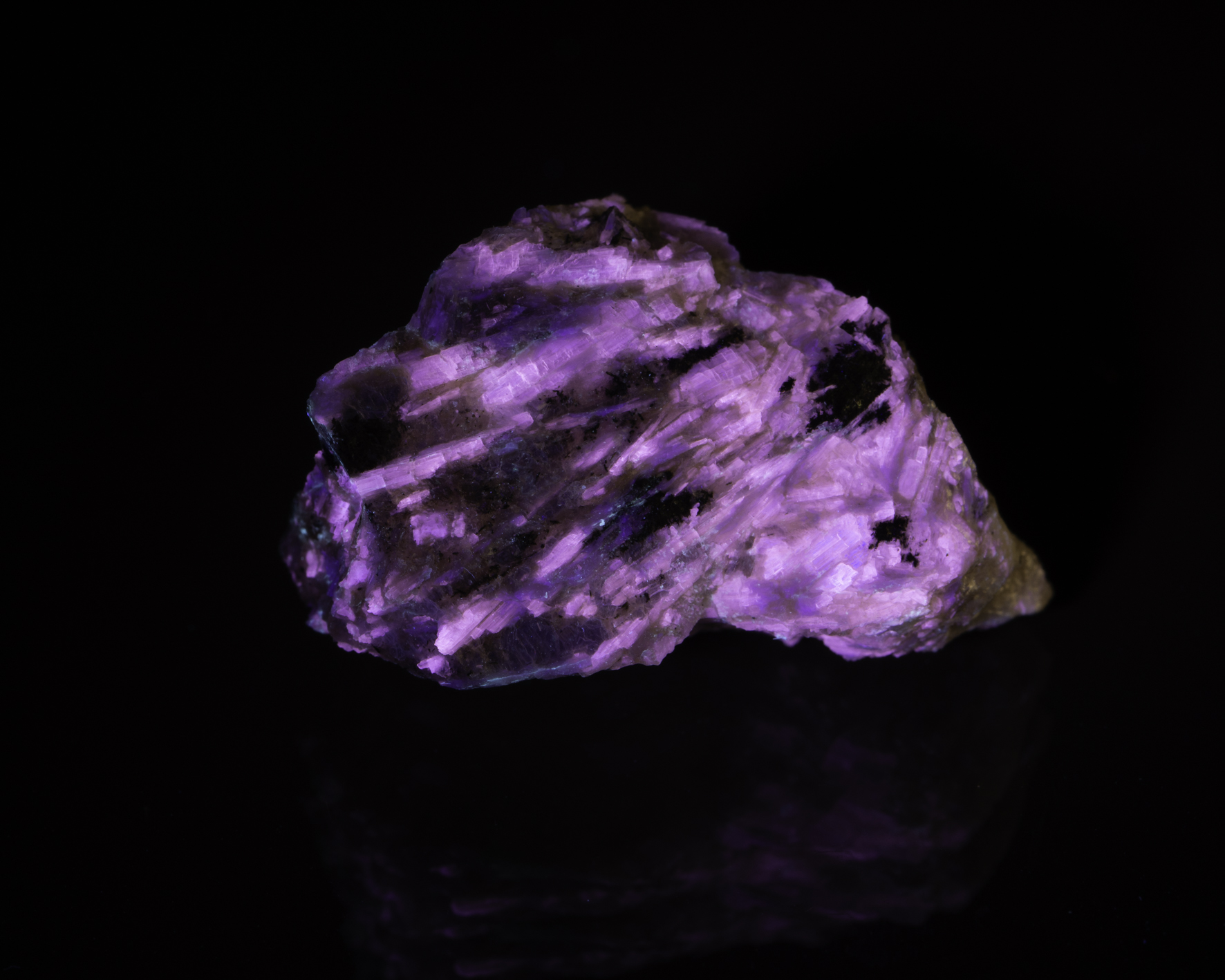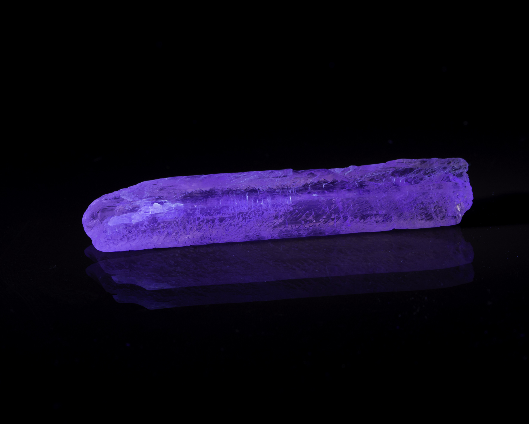 Sierra de Cruces zwei Stücke zum Vergleichen. Insbesondere bei 405nm Anregung sieht man auf dem einen Stück deutlich, dass auch reine gelborange Mn