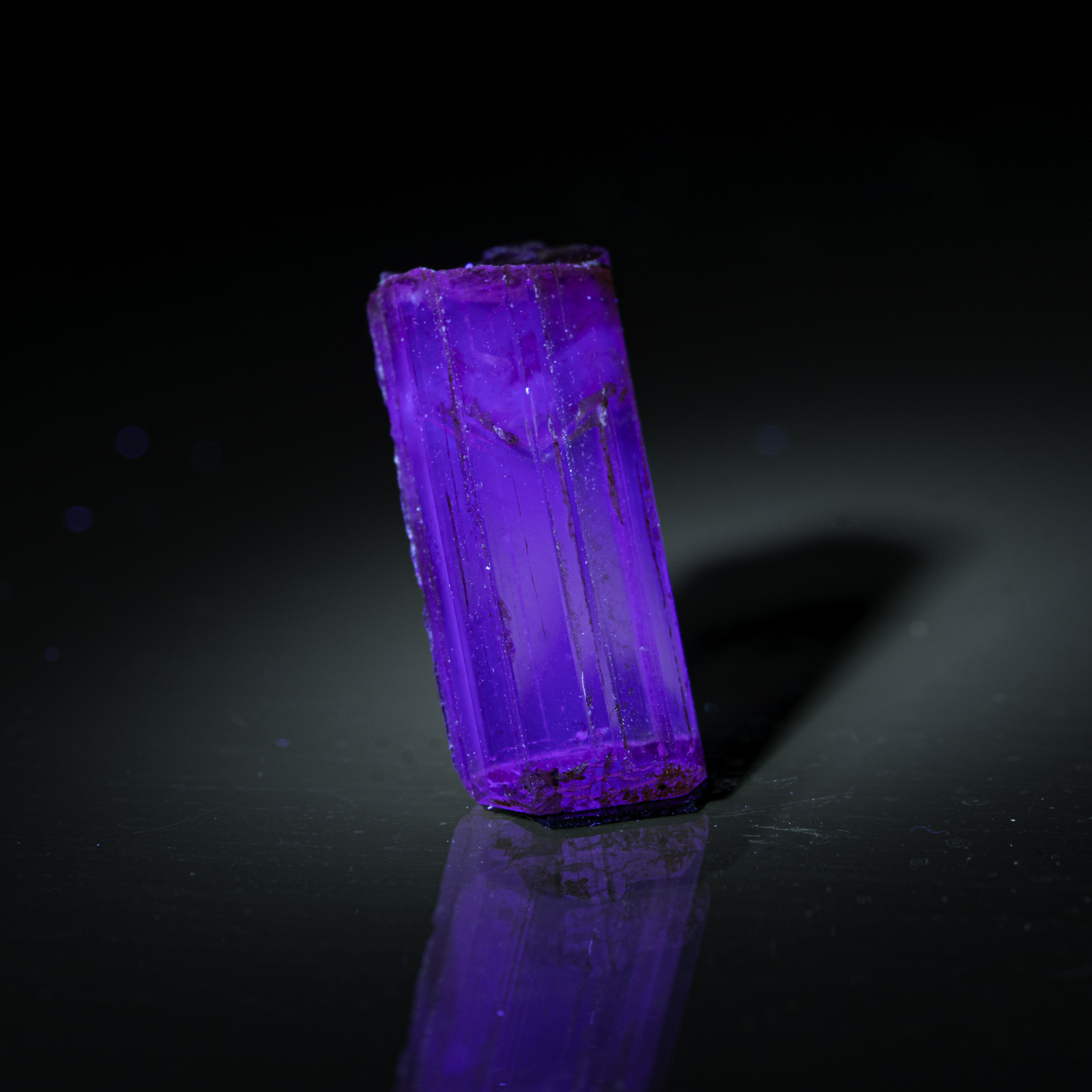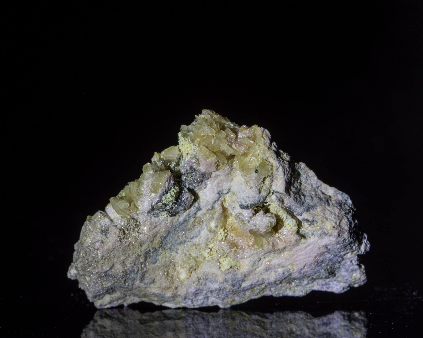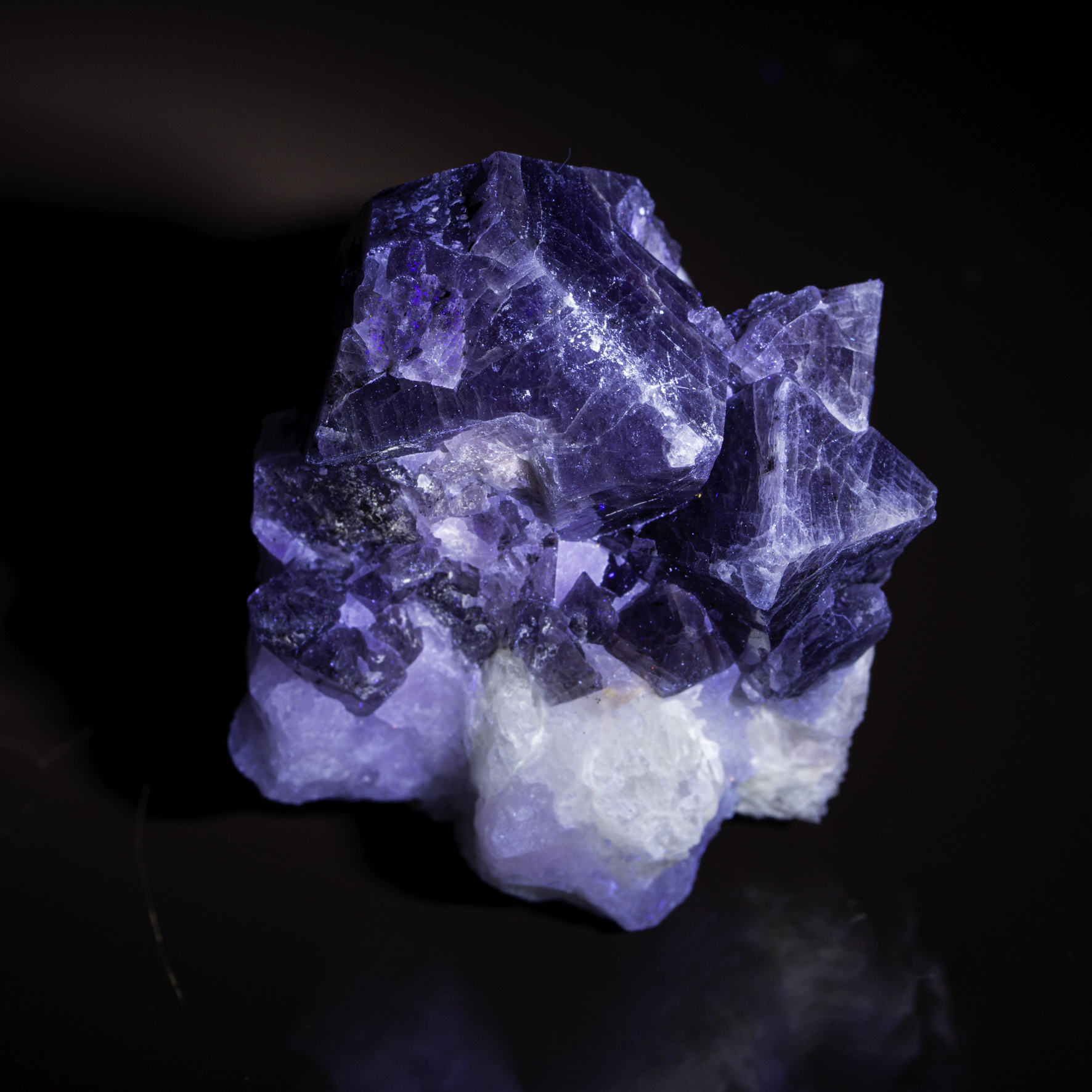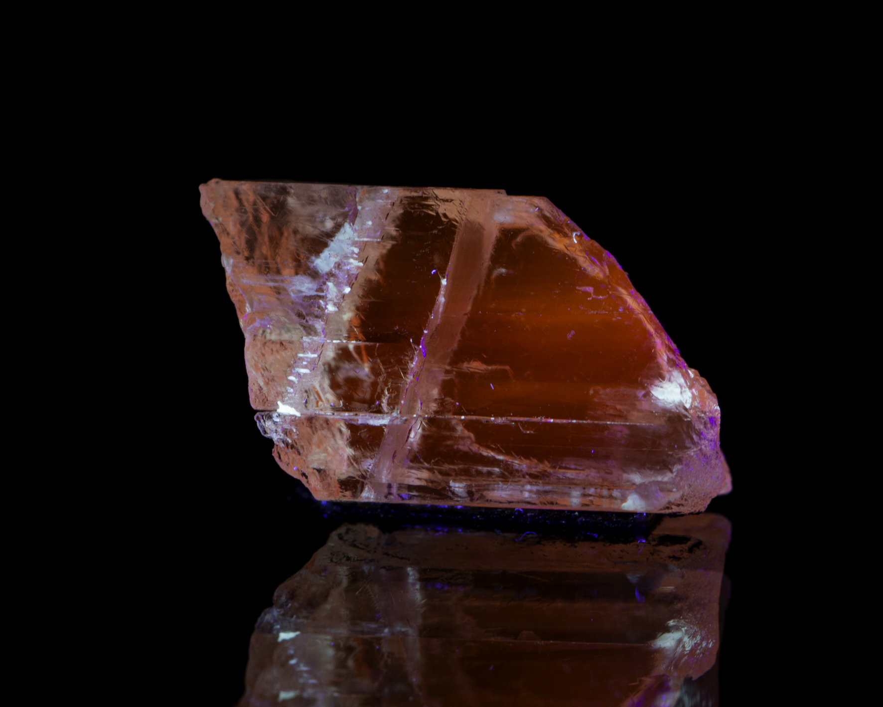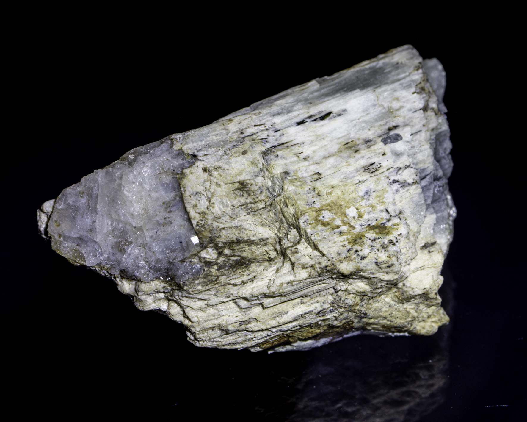 Sierra de Cruces zwei Stücke zum Vergleichen. Insbesondere bei 405nm Anregung sieht man auf dem einen Stück deutlich, dass auch reine gelborange Mn