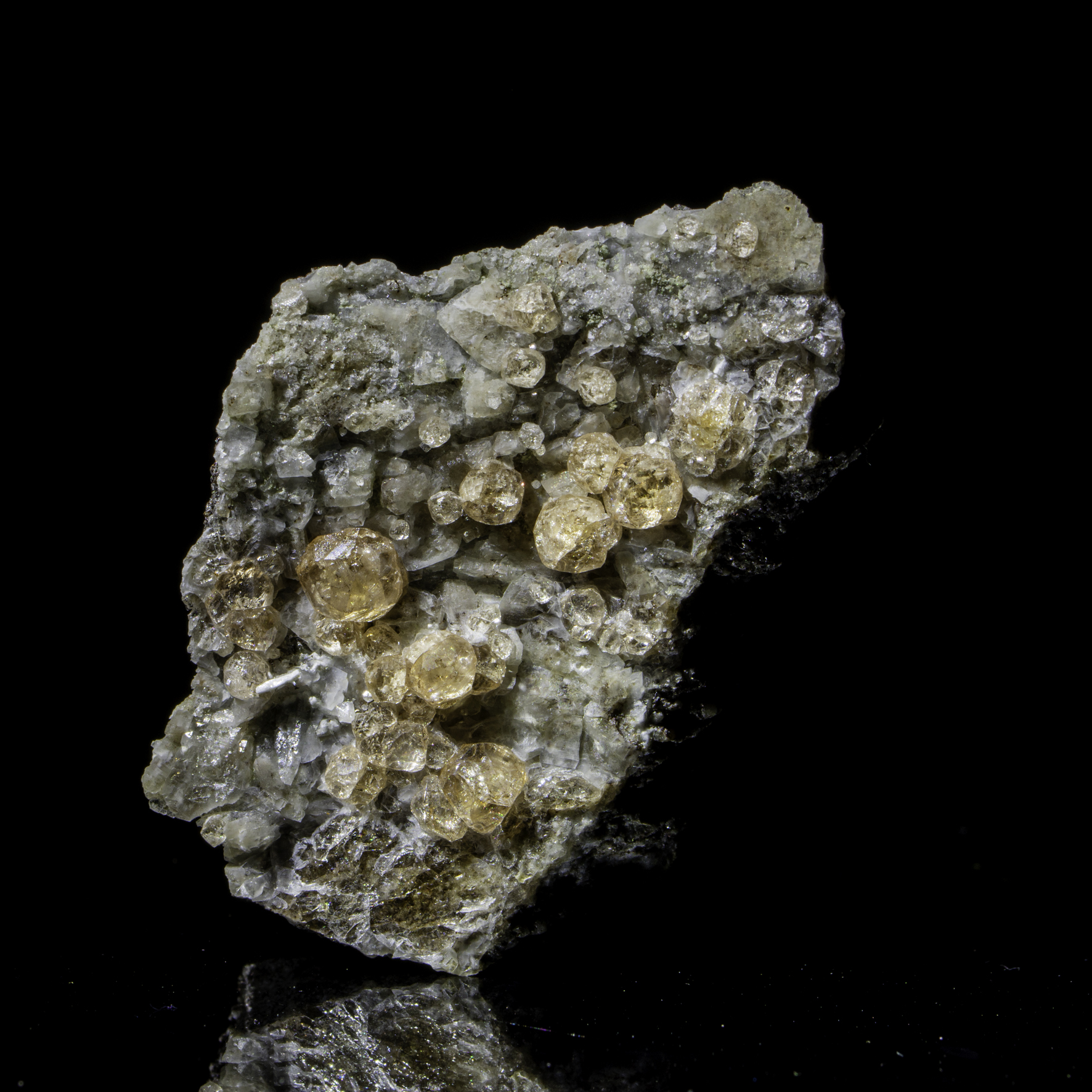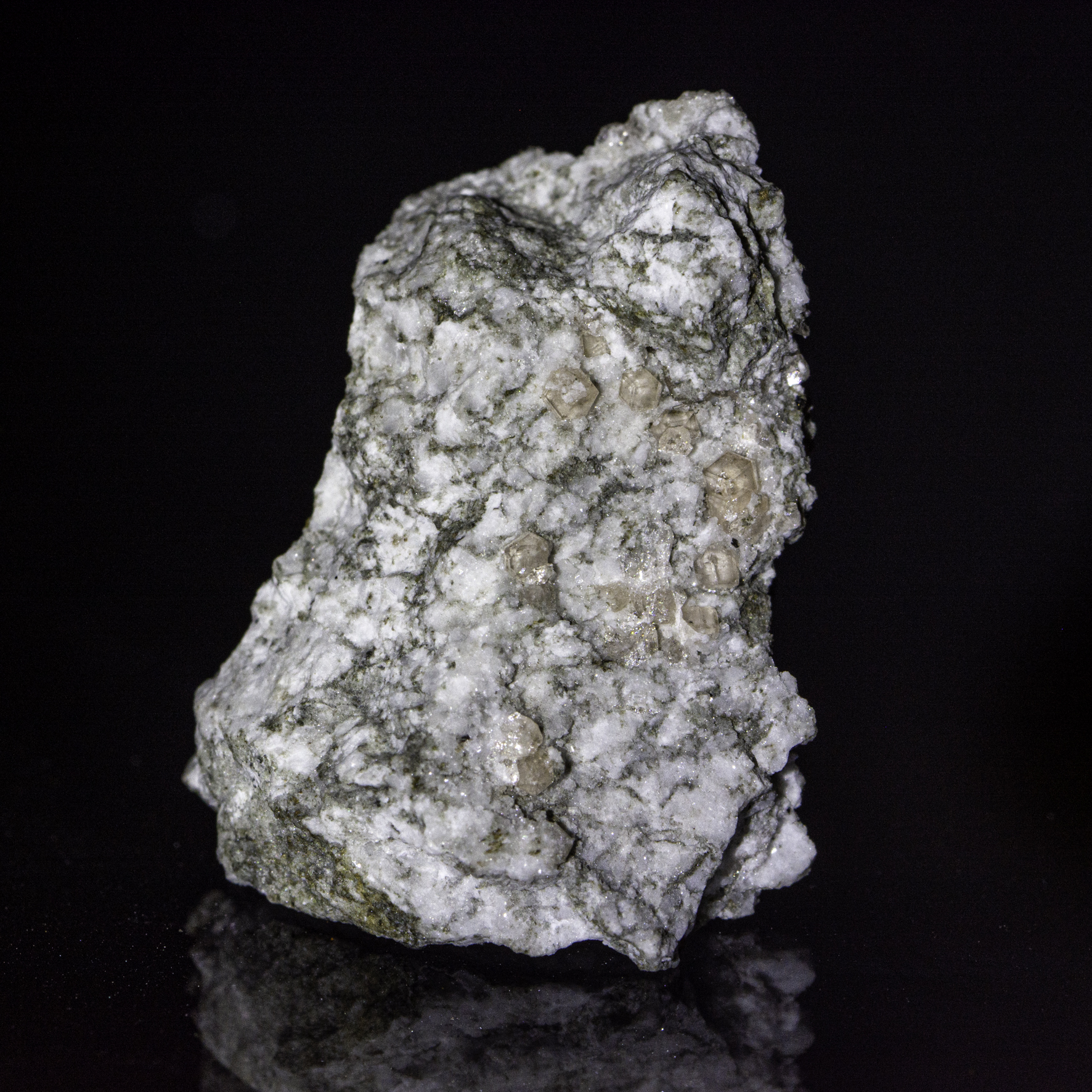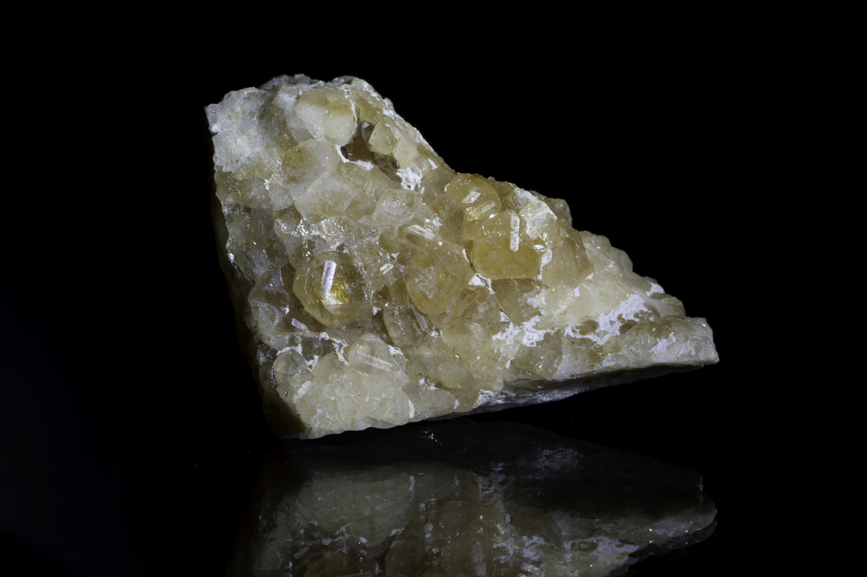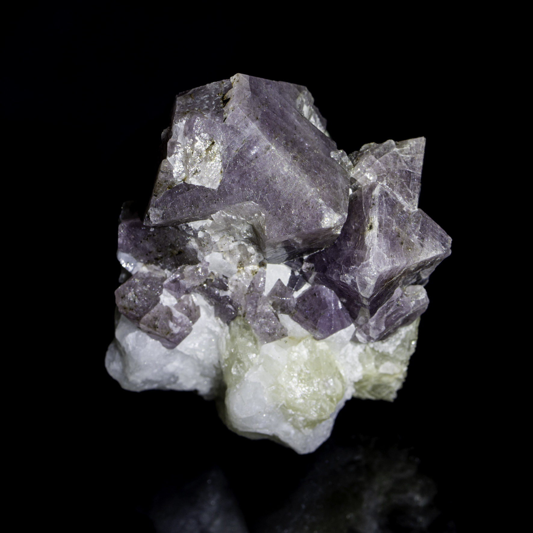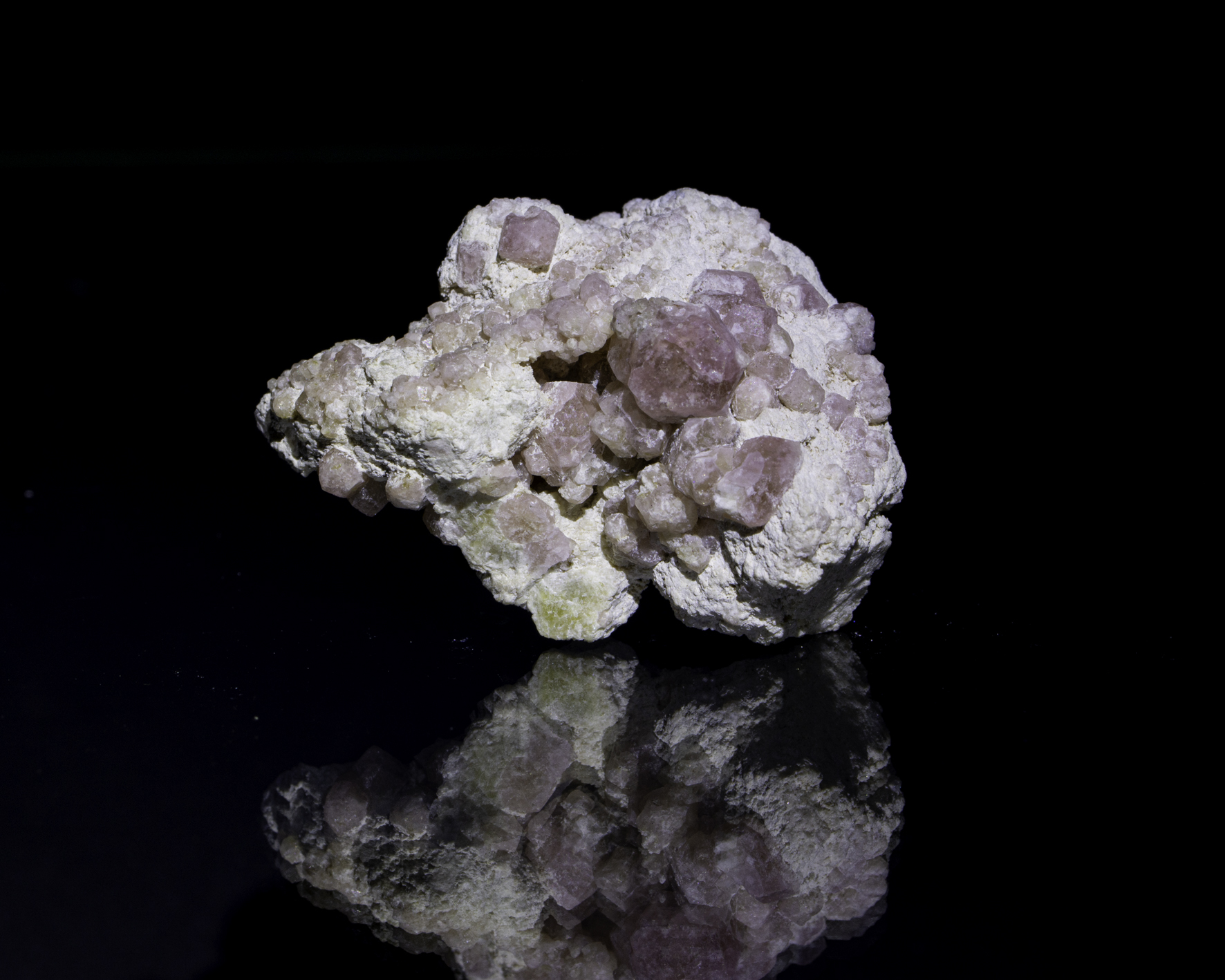 Sierra de Cruces zwei Stücke zum Vergleichen. Insbesondere bei 405nm Anregung sieht man auf dem einen Stück deutlich, dass auch reine gelborange Mn