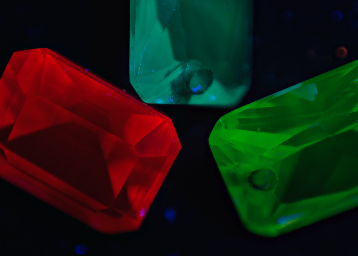 Die rote Lumineszenz von Rubin, Smaragd, Grossular/Uwarowit, Disthen, Spinell, Alexandrit oder Topas, die auf Übergängen von Cr3+ basiert - ist Phosphoreszenz (6,7).