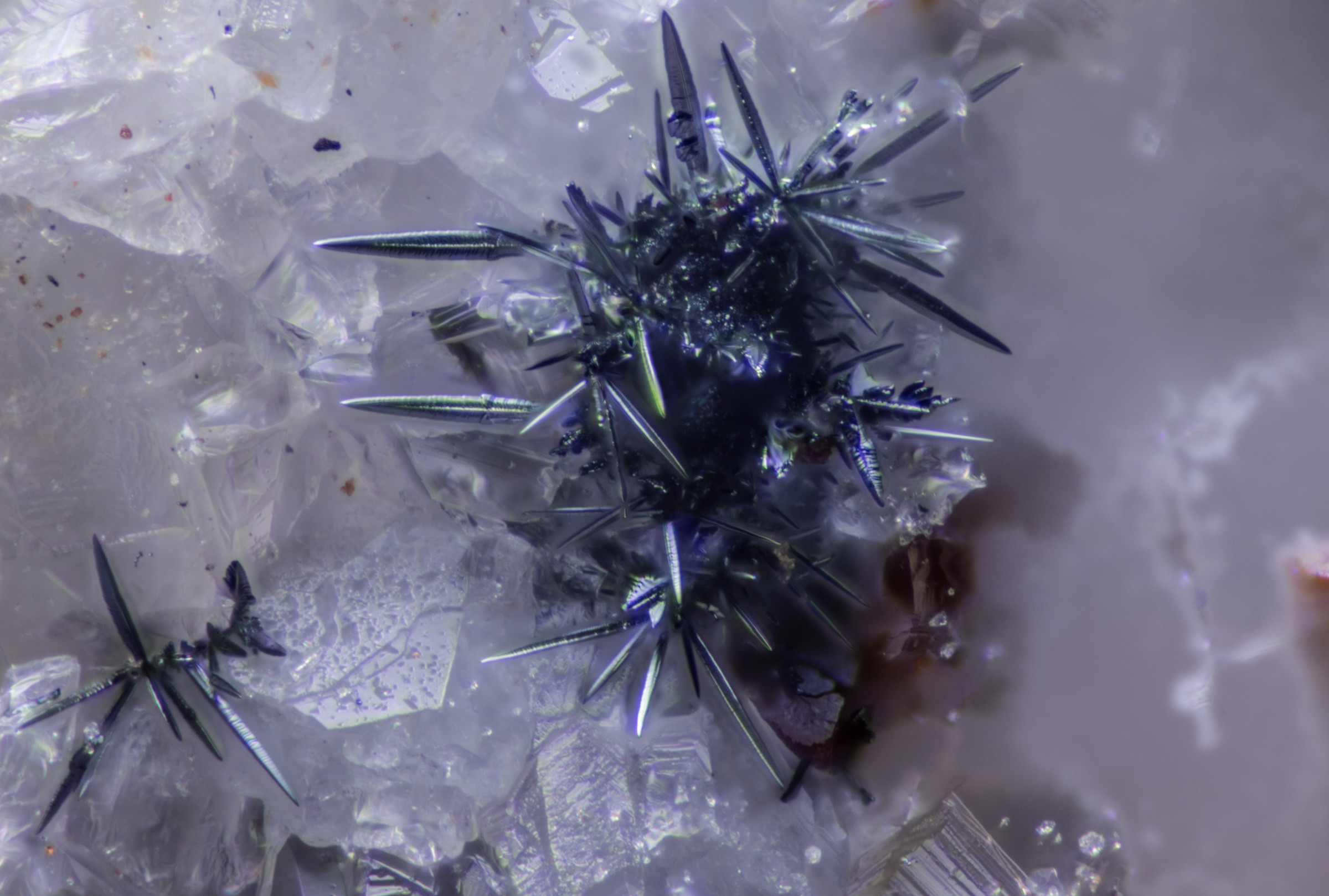 Jetzt hab ich mal schnell die Akanthit-Stufen aus der Sammlung unter das Mikroskop gelegt, die schauen anders aus, so gefiedert wie üblich und deutlich dunkler im Grauton.