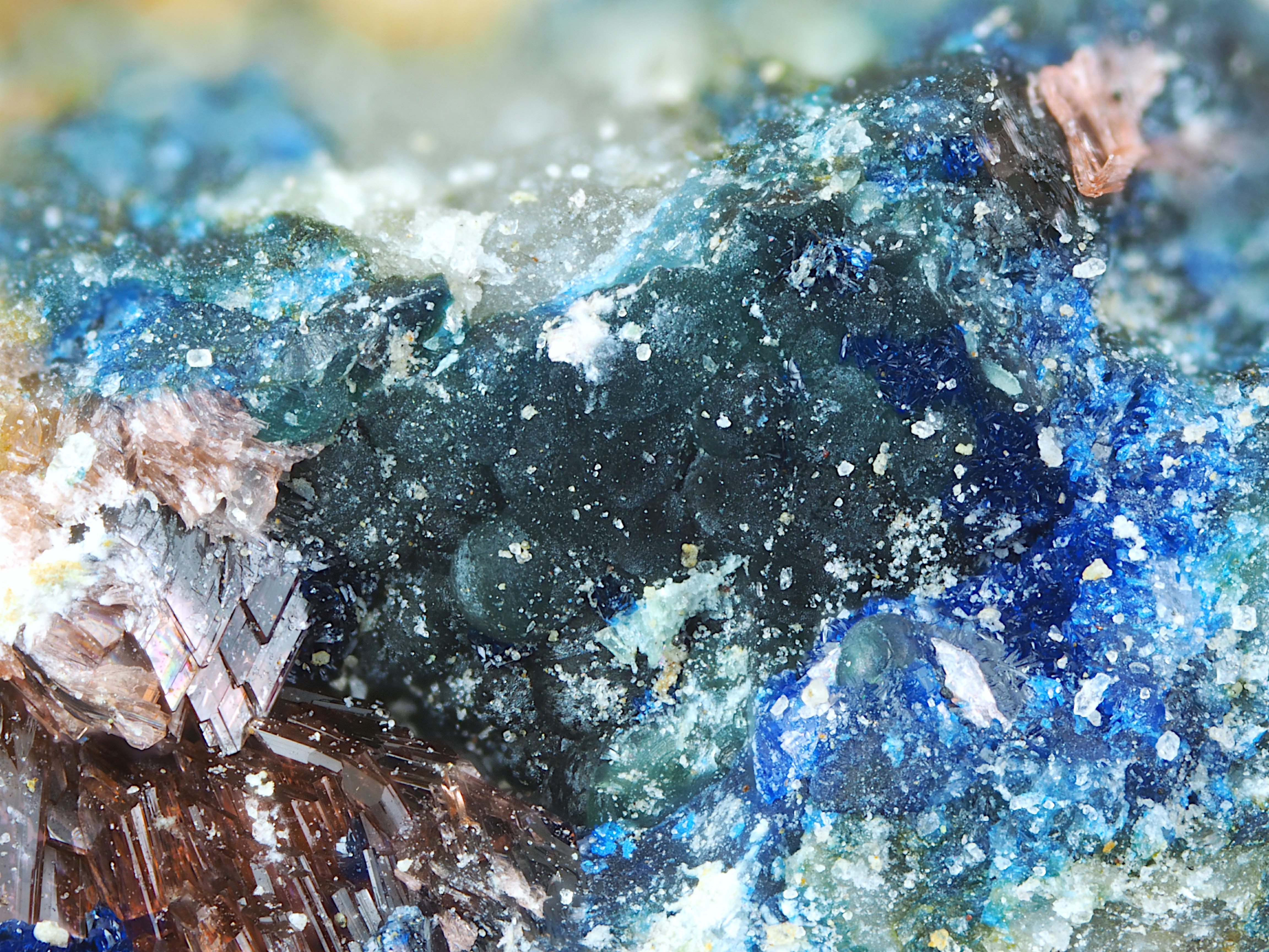 ich habe eine Stufe von der Silberberghalde, Brixlegg, auf der neben Azurit und Erythrin auch Zinkolivenit sein soll. Es ist wohl mindestens noch ein weiteres Mineral mit dabei.