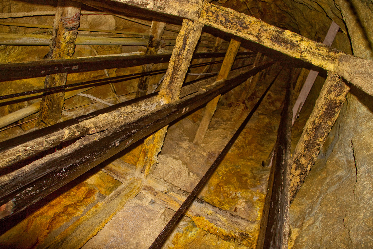 Meine Primitiv-Bilder mache ich heute mit diesem Equipment. Bilder über 1,5 m Entfernung (lange Strecken, Schächte, Ausbaukammern) immer ohne Blitz, meist nur mit 1 Leuchte (Stollenflakscheinwerfer mit 4000 lm) und löse mit Funk aus. Da macht auch das klapperige Stativ keine Probleme - Zeit zum Auspendeln hat man ja. Nahbereich bis 1,5 m mit Blitz. Anbei ein schneller Schuss (war eine Besucherführung) ohne Weißabgleich usw. von 2010.