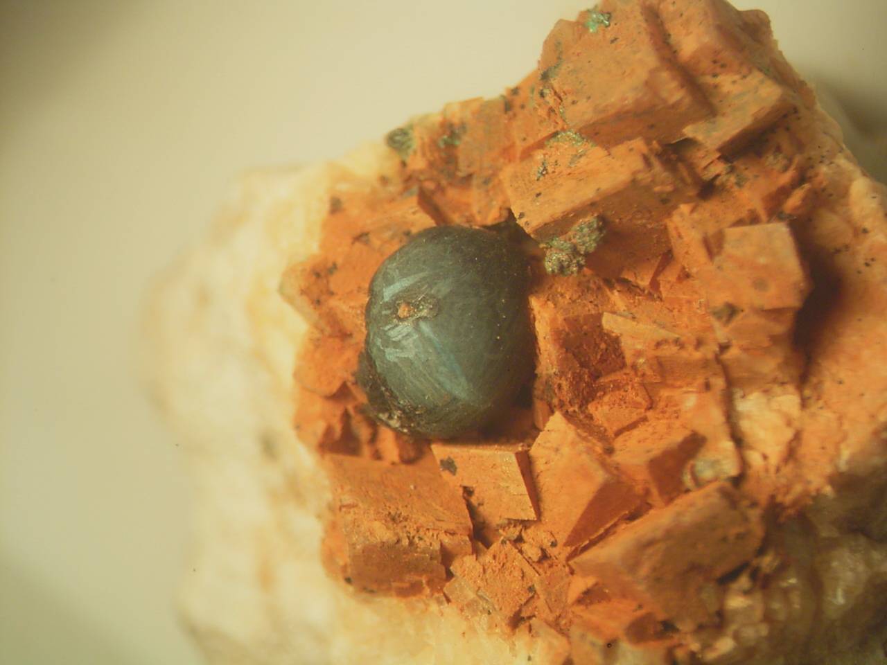 Das Foto ist auf gut deutsch Sch..... mit simpler Ausrüstung gemacht. Es ist in der Tat eine dunkelblaue Azuritkugel. Wenn ich Zeit bekomme, suche ich das Stück nochmal heraus und fotographiere es neu.