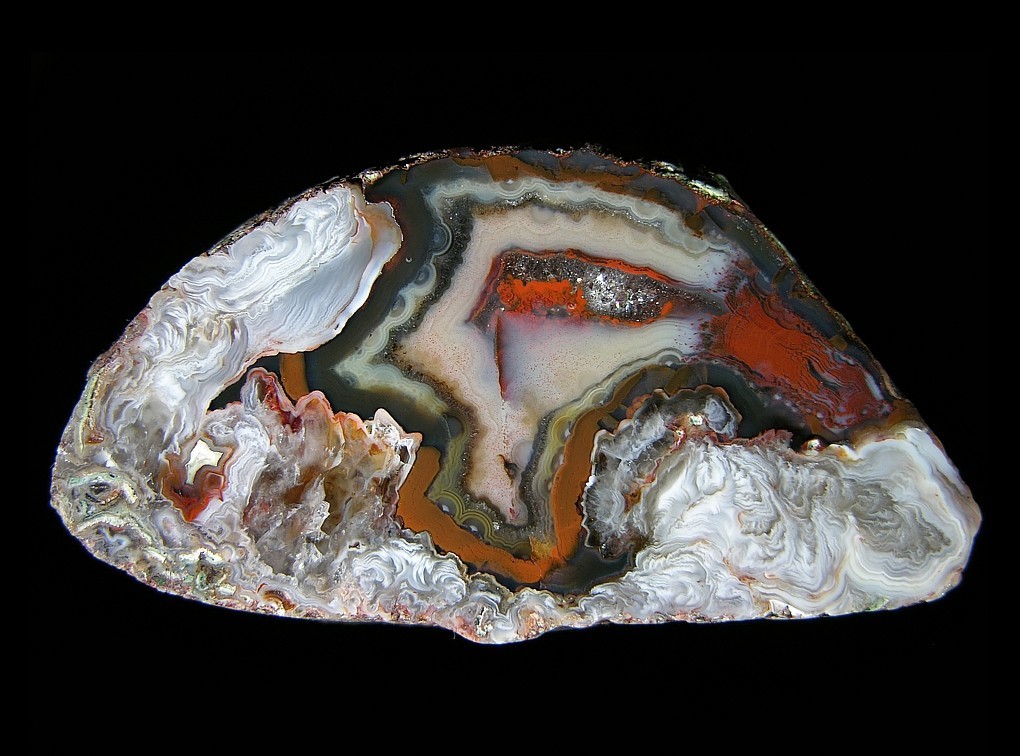 Danke für's Zusammentragen der Erfahrungen! Man sieht schon, dass die "Wolken"bildung mit zum Repertoire auch der mitteleuropäischen Achate gehört und zumindest nicht so fundstellenspezifisch ist, dass man sie bei Überlegungen zur Achatgenese getrost ausblenden könnte. Darum geht es mir. Die beiden von mir erwähnten Stücke von Rückweiler kommen den brasilianischen insofern noch näher, als da die Wolkenbildung deutlicher auf die Rinde begrenzt ist.