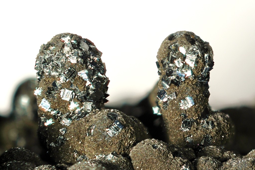 zu dem Bild sind Ferrihollandit und Pyrolusit genannt. Ich vermute mal, dass eines der Minerald das aufsitzende mit den starken Lichtreflexen ist und das andere diese Stalagmiten bildet. Kann da jemand präzisieren, was was ist?