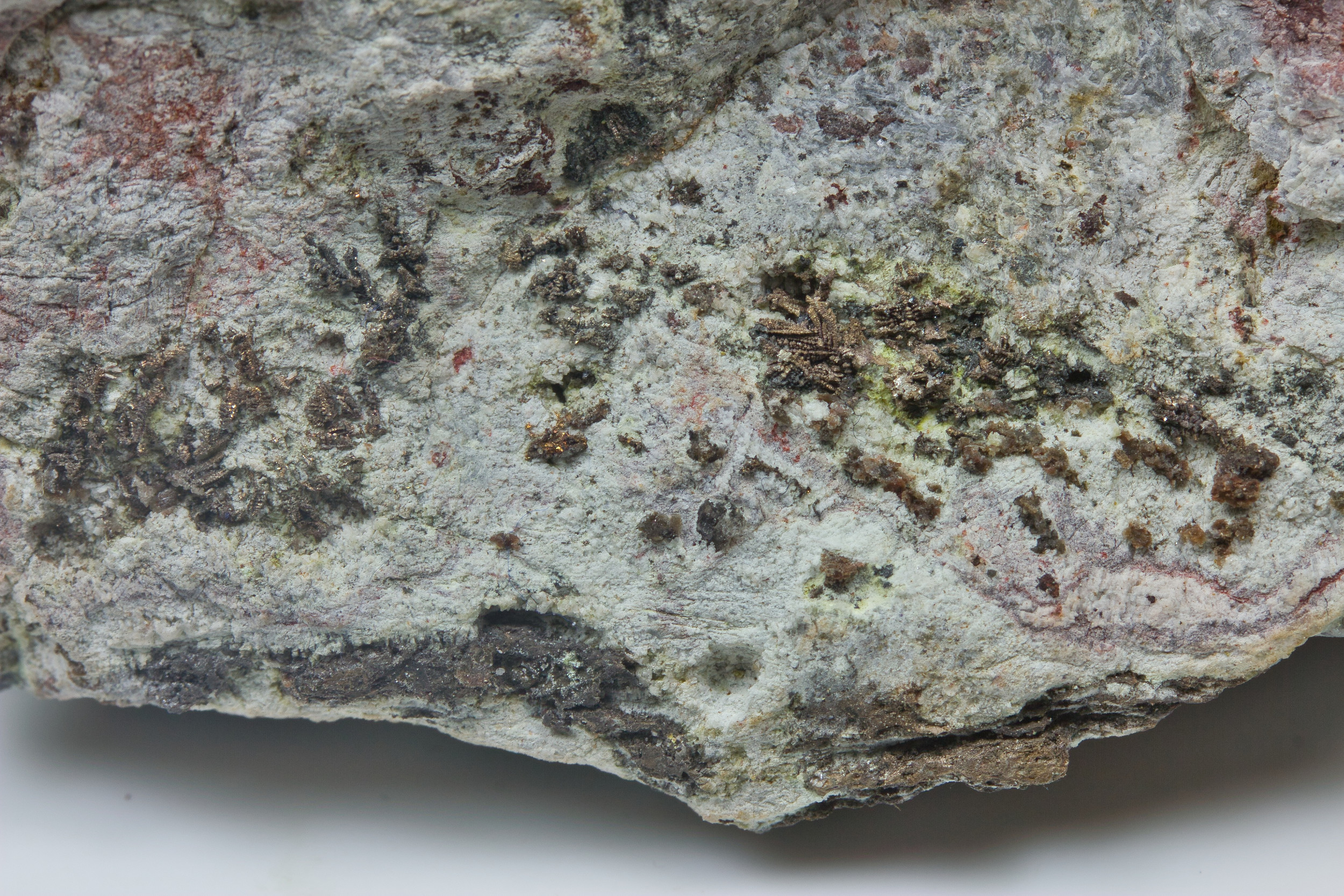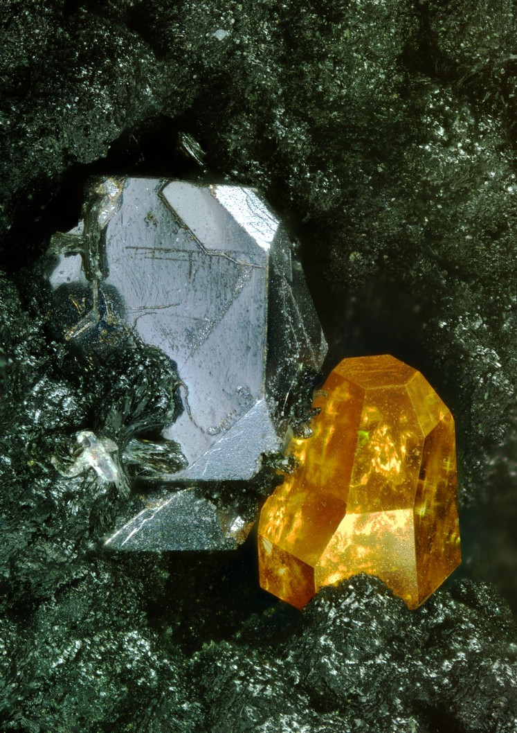 Steinbruch Kreimbach am Ende des letzten Jahrhunderts: einer der Tage, an denen man sich eine Sprengung an der Prehnitader mit vielen Mitstreitern teilen musste und Platzhirsche das Territorium aufgeteilt hatten. Deshalb verkrümmelte ich mich auf eine tiefere Sohle, auf der ich dann einen Aplit mit kleinen Calcitadern fand, der die Prehnitader durchschlagen hatte. Nach dem Weglösen des Calcites fand ich diese wunderschöne Gruppe von Galenit und Greenockit: