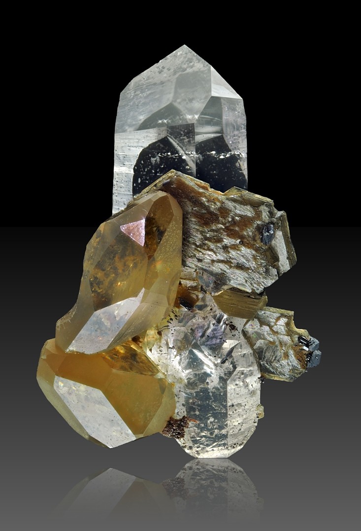 Bei einem kurzen Besuch einer ehemals großartigen Fundstelle am Telligletscher musste ich feststellen, daß die komplette Zone ausgiebig angebuddelt, jede Spalte angekrazt und der Kernbereich der schmalen Klüfte geradezu planiert war. Eine klitzekleine Tasche war jedoch übersehen worden, in der sich neben mehreren losen Anataskristallen, auch dieser Bergkristall-Schwimmer mit aufgewachsenen Anatasen fand :