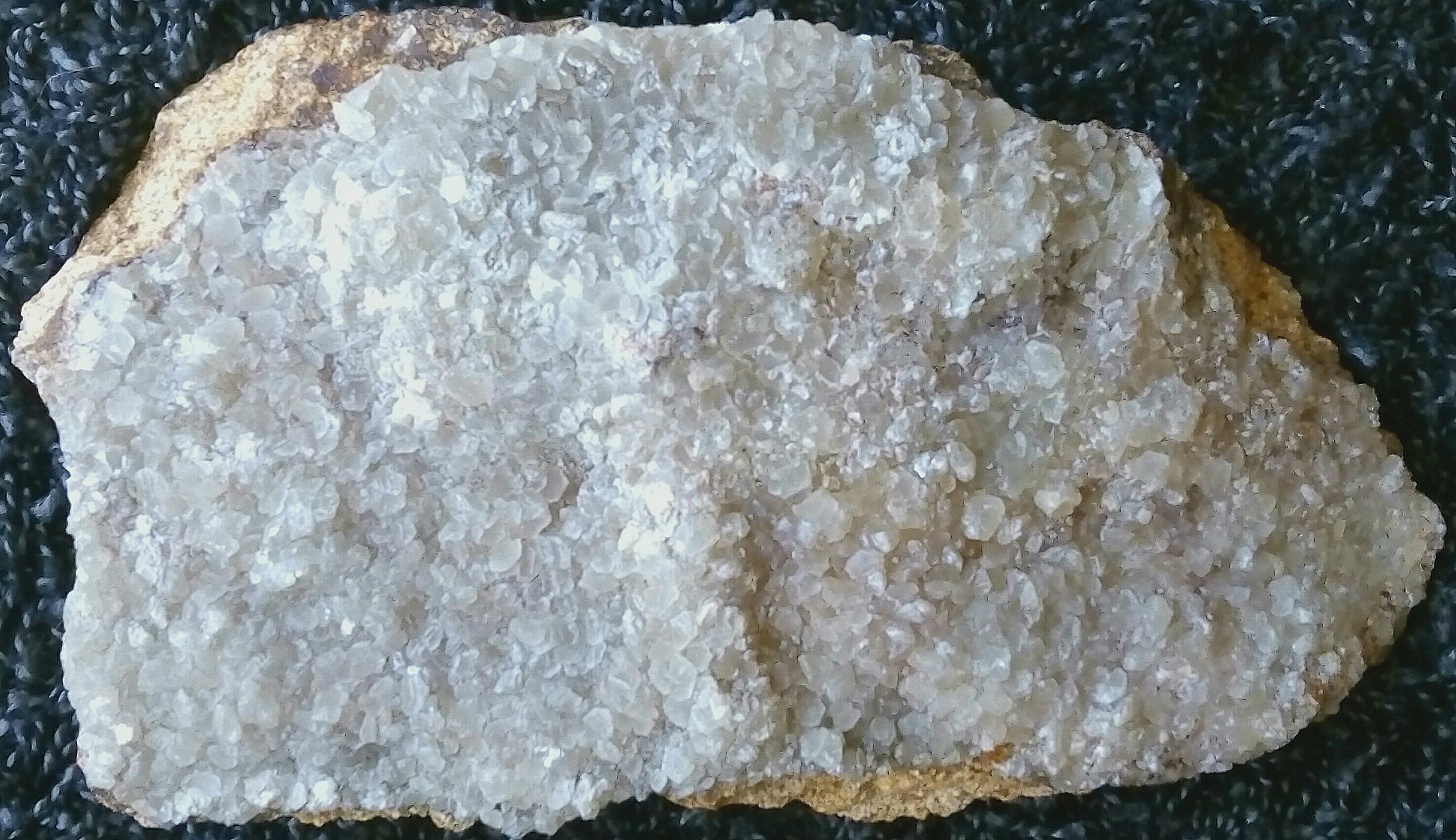 Vorgestern hat es endlich mit einer ersten Mineralientour geklappt. Ich habe ein altes Bergwerk im Voldertal/Tirol nach ca. 45 Jahren wieder einmal besucht.  Leider war nichts mehr wie damals: der Wald abgeholzt, überall im tw. extrem steilen Gelände Äste und Stammteile auf dem langen Gras über den Phyllitplatten (super rutschig) und zusätzlich der Boden immer noch tief gefroren. Eigentlich wollte ich zum untersten Stollen absteigen, war auch schon ca. 7-8 m entfernt, musste dann aber unverrichteter Dinge umkehren, da absolute Absturzgefahr bestand (gefrorener, fast senkrechter Boden oberhalb einer Felswand). Also ohne große Erwartungen rein in den mittleren Stollen. Dabei gab es überraschenderweise doch etwas Sammelnswertes: kleine cm-große Hohlräume mit Quarzkristallen und Siderit (teilweise von einer Quarzkruste 2. Generation überwachsen) und kleine Spuren von Erythrin (bisher nicht beschrieben, wenn auch nicht abwegig bei der abgebauten Sulfidvererzung). Von Funden von Drusen mit Kristallen (seien sie auch noch so klein) wurde von dort noch nie berichtet.