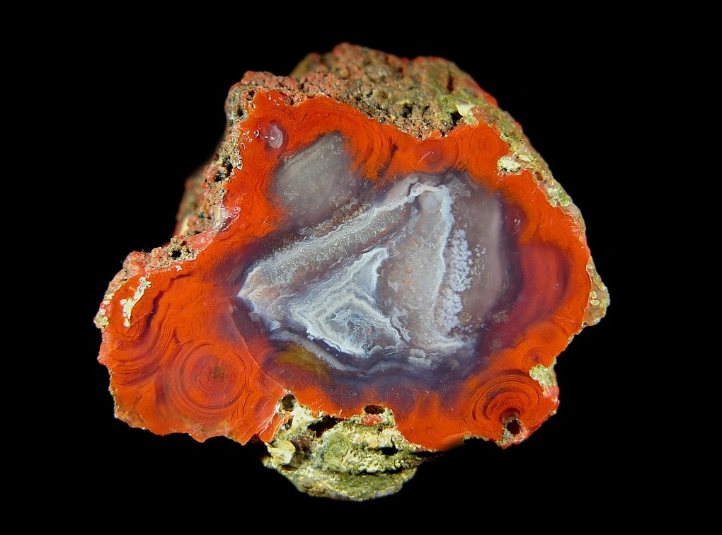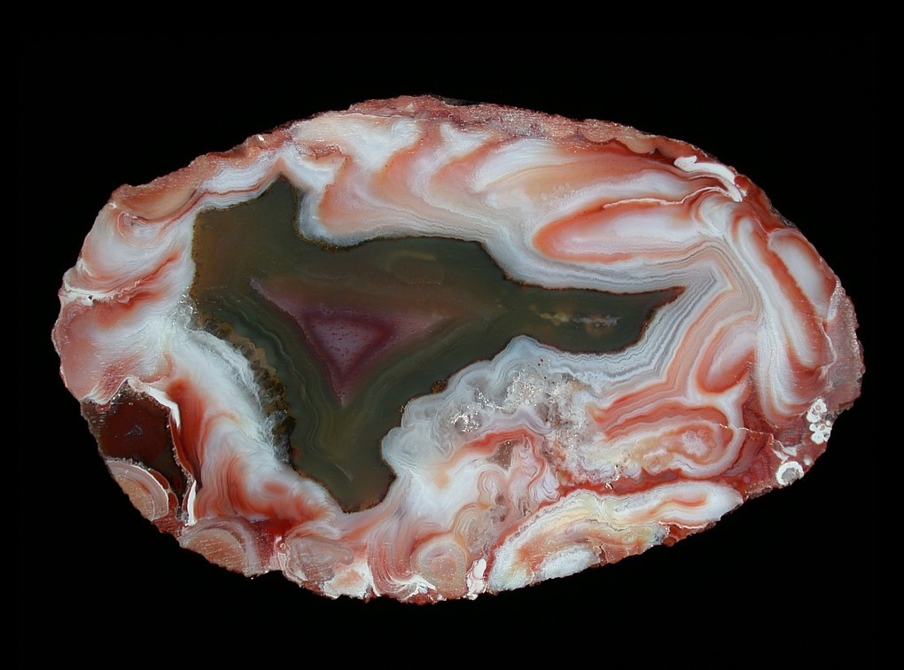 1. Flammen- oder Wolkenachat in rötlichen oder grauschwarzen Tönen