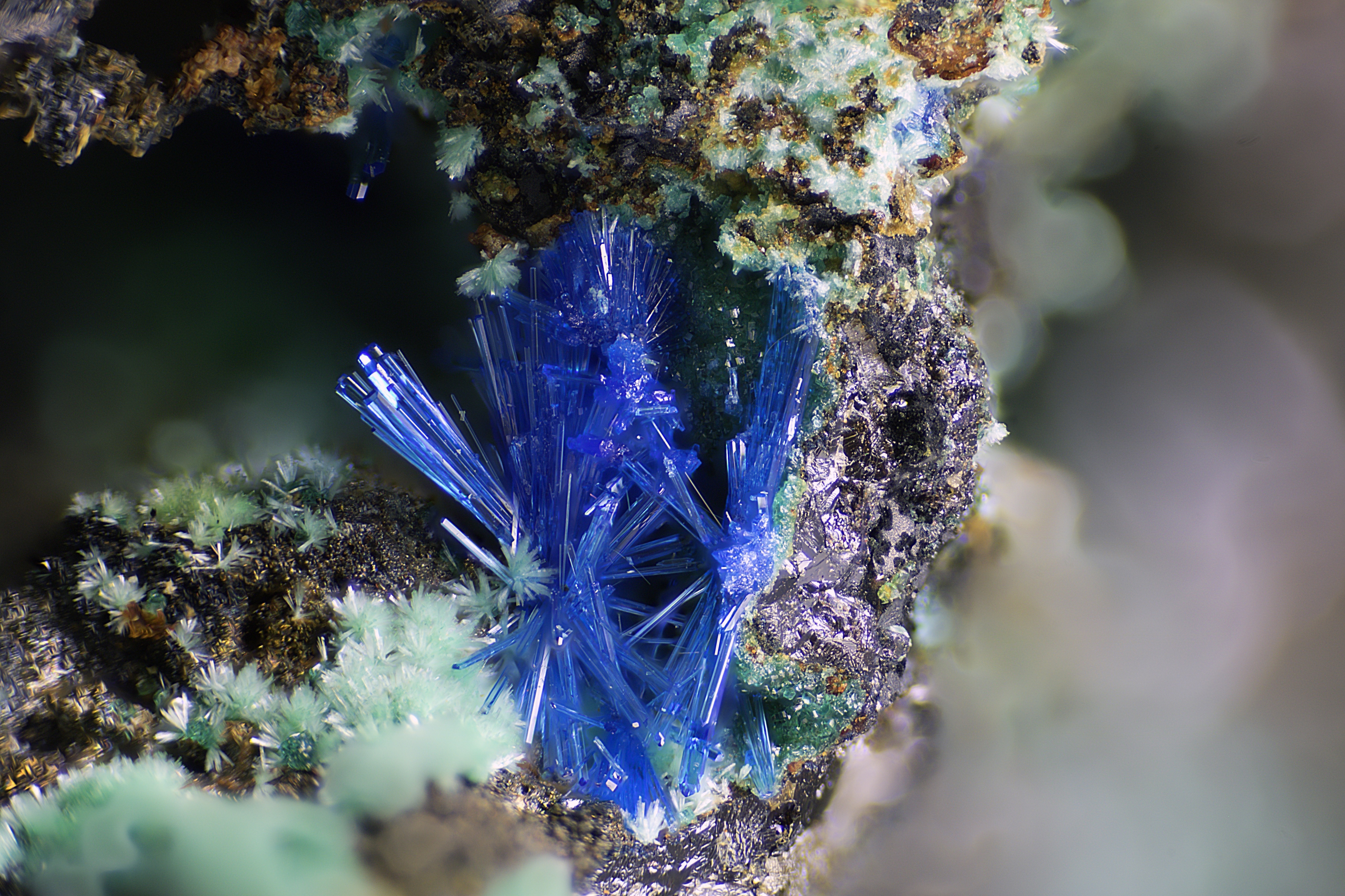 Bild 2 zeigt eine Azurit-Stufe aus Tsumeb/Namibia.