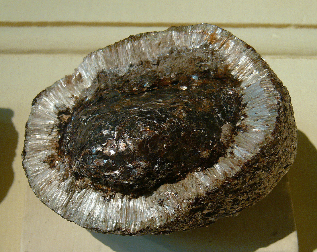 Ich denke, dass sich die neue Analyse auf den Mantel der Kugel bezieht. Sowohl die alte Benennung Gedrit als auch die neue Analyse Antophyllit sind Amphibole. Für den Glimmer ist hier bisher nur die Gruppenbezeichnung Biotit angegeben, was ja Phlogopit mit einschließt.