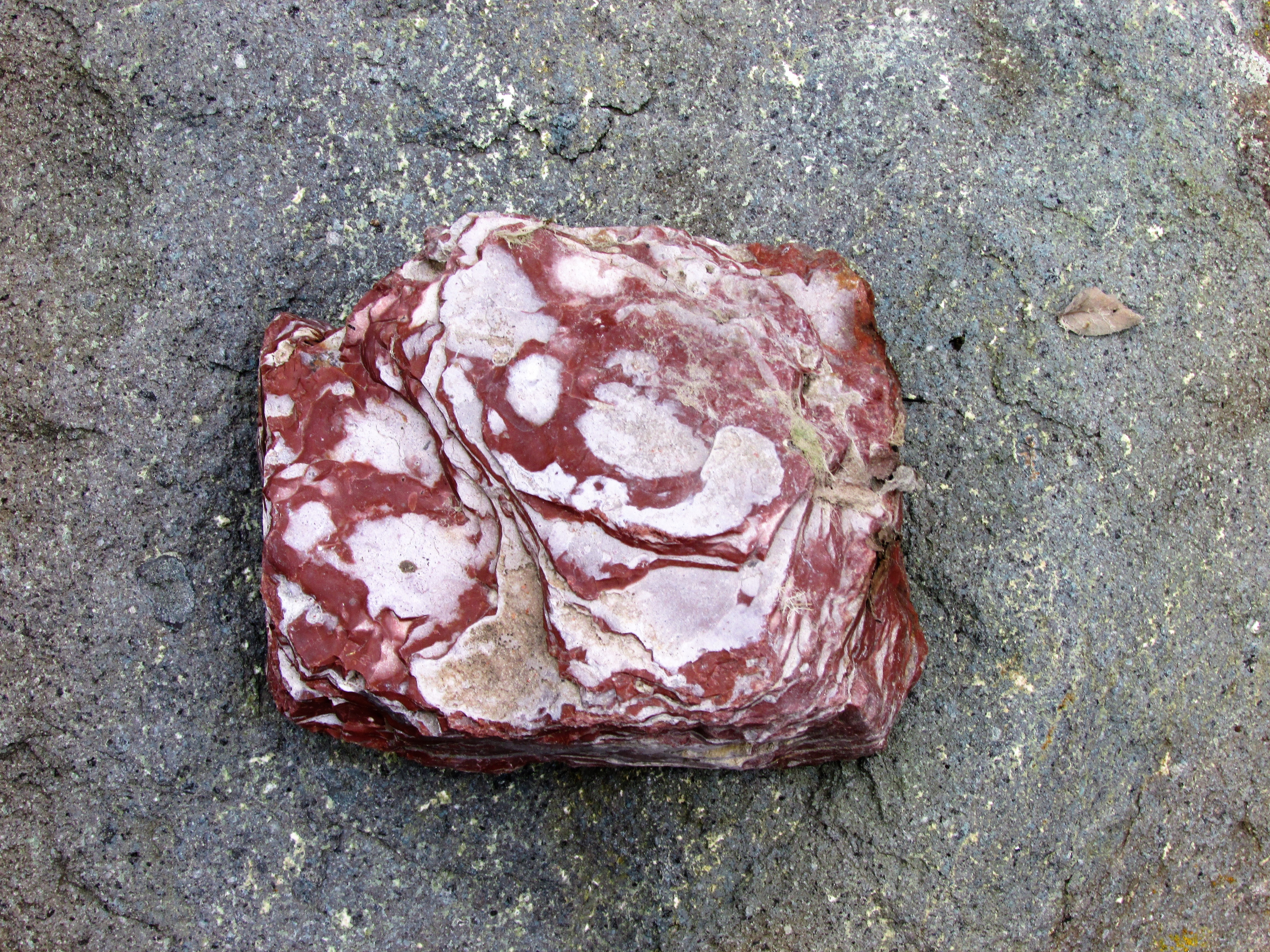 Glück Auf! ... und danke für die Anregung. Die Einstufung ist natürlich gar nicht sicher und beruht nur auf der optischen Ansprache. Ich würde von der Genese das auch als verkieselten Tuff betrachten, mineralogisch halte ich die roten Bereiche jedoch für Chalcedon in der Ausbildung Jaspis.