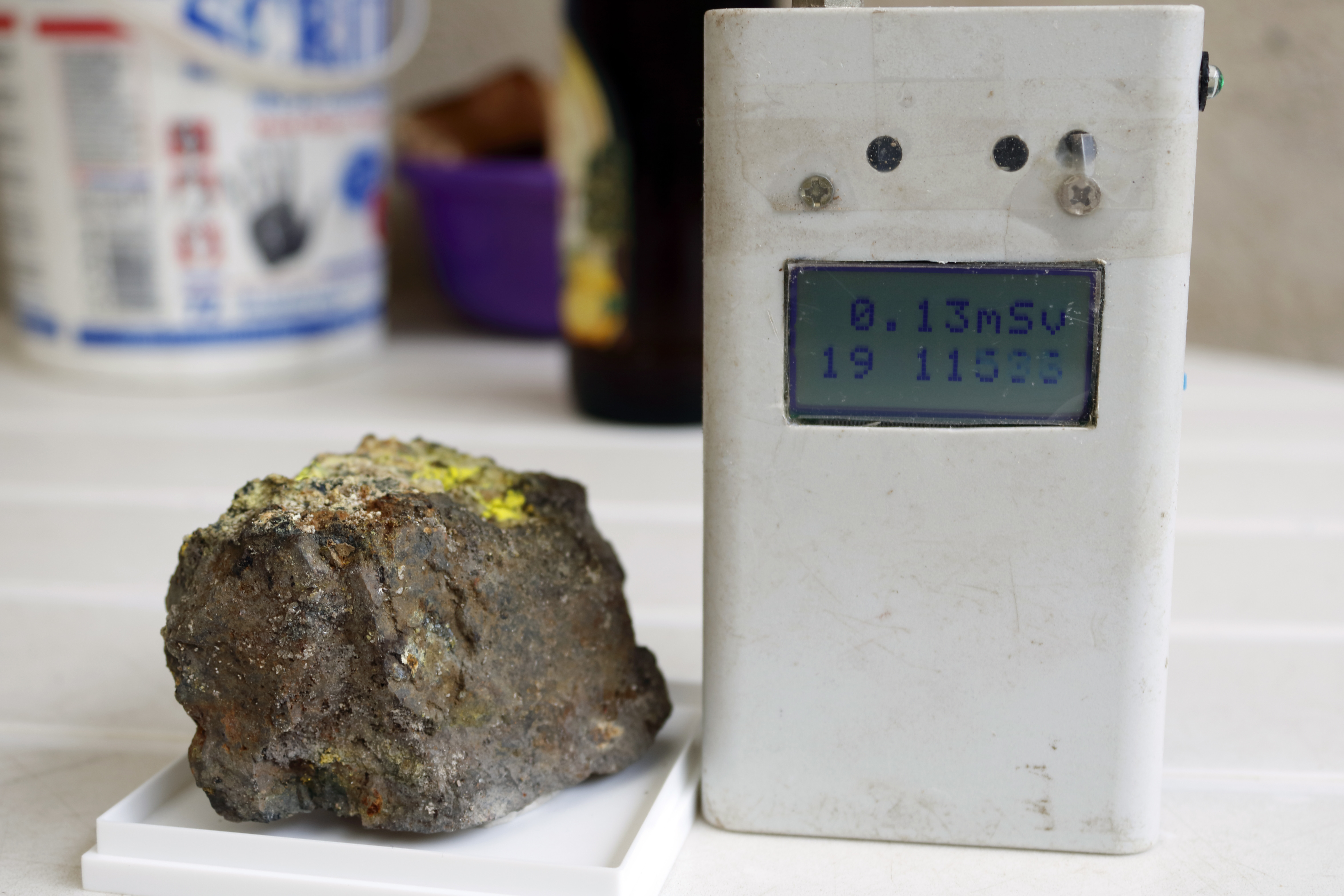 Ich wollte mit den Angaben nur verdeutlichen das manche Stücke doch erhebliche Strahlungsdosen absondern und was selbst kleine Abschirmungen in Form einer Plexiglasdose ausmachen können unabhängig vom Abstand zur Stufe. Die Bilder sind im Zusammenhang eines anderen Beitrages entstanden.