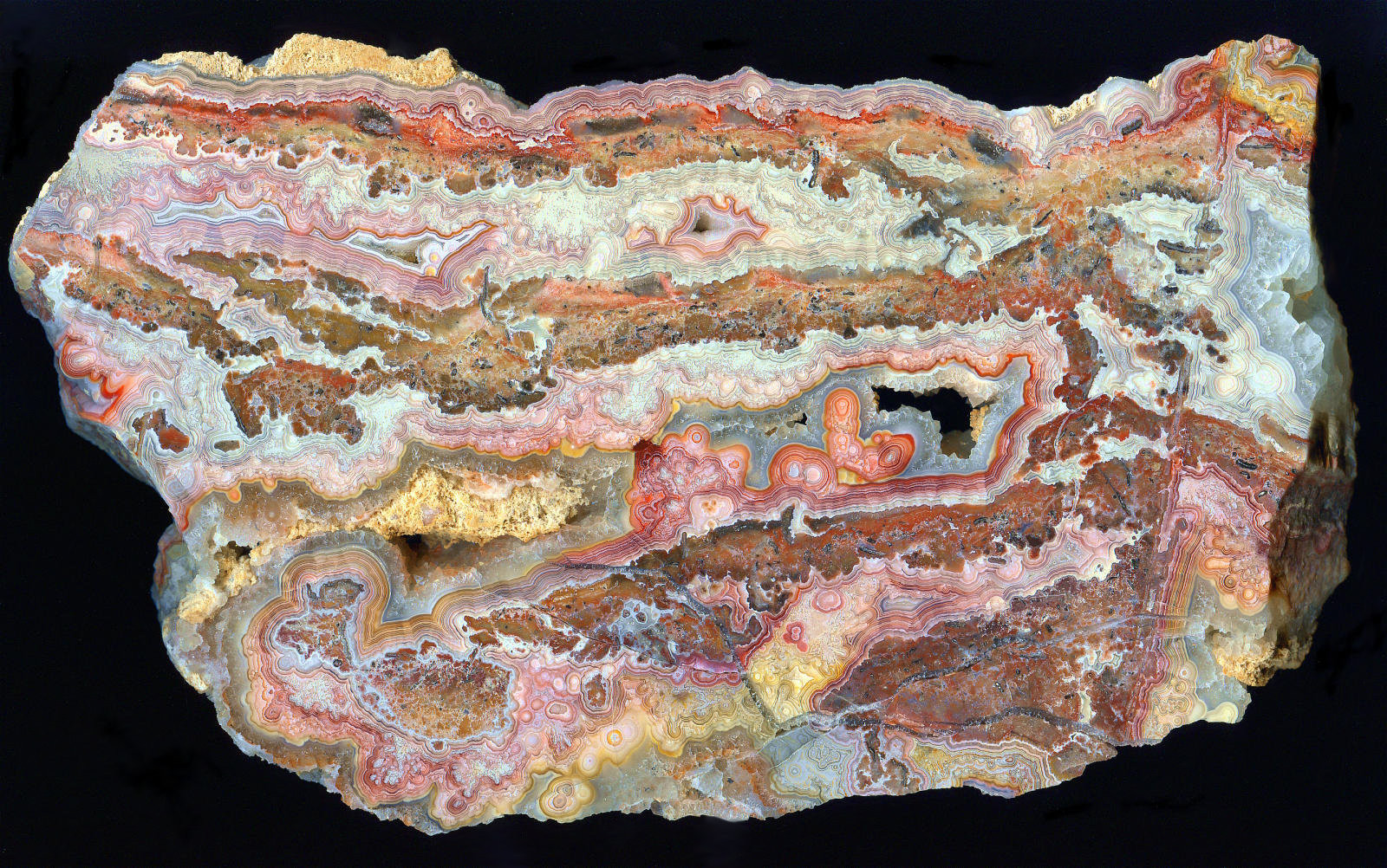 Mir scheint, das Stück stammt aus Mexico und könnte einen "Red Crazy Lace Agate" darstellen.