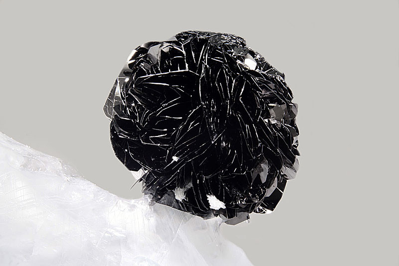 Die Graphitnatur der sehr gelungen ins Bild gesetzen, schwarzen Bommel erscheint mir durchaus möglich. Die Graphite dieser Fundstelle werden offensichtlich häufiger aus dem Calcit ausgeätzt, um sie als herausstehende Kristalle oder Kristallaggregate zu erhalten.