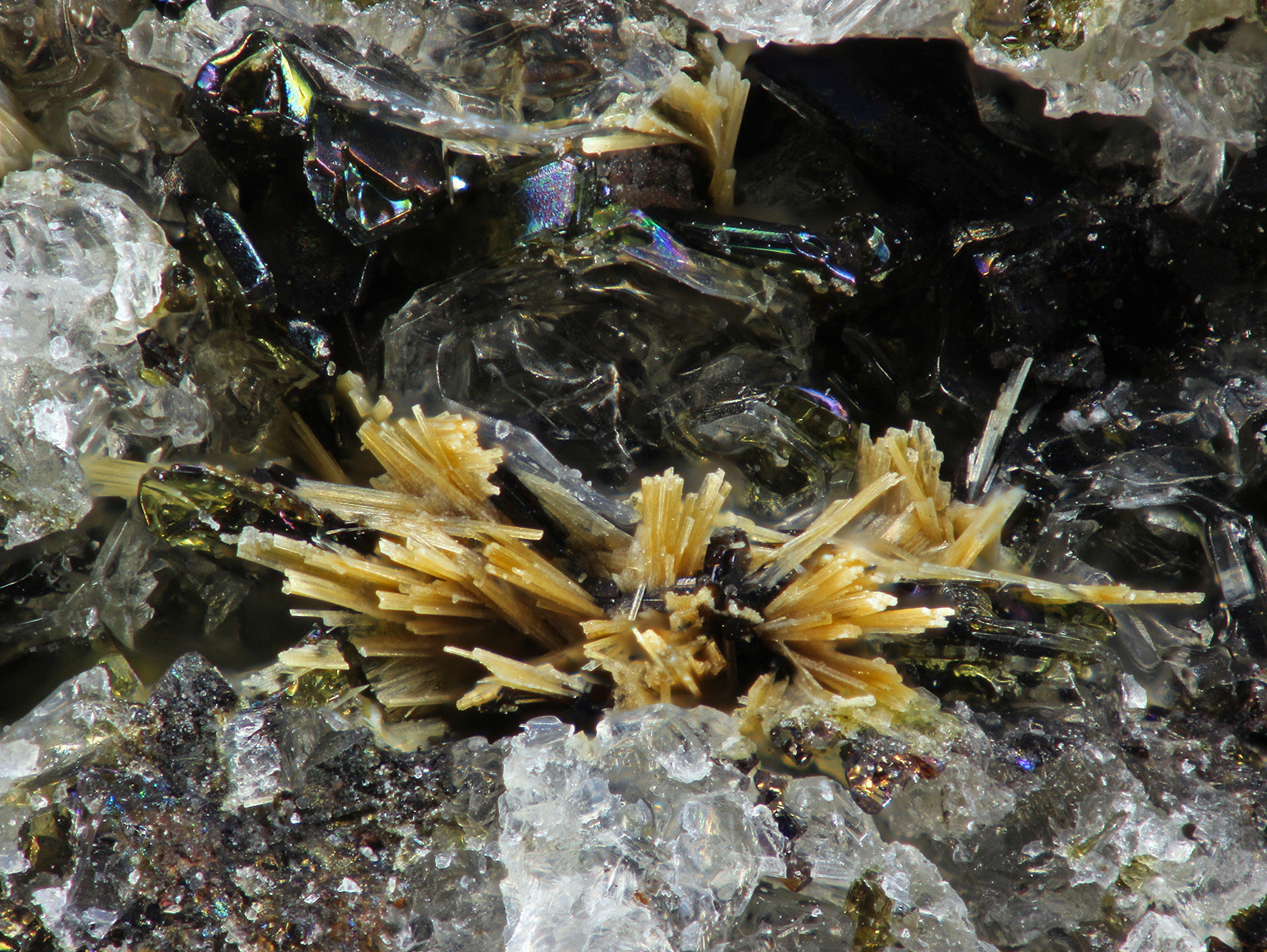 Diese trüben Nadeln sind mit sehr hoher Wahrscheinlichkeit kein Götzenit, sondern etwas amorphes. Die Götzenite von der Löhley, die ich aus meinen Funden analysieren konnte, waren farblos transparent. Bereits bei geringer Trübung begannen die Raman-Banden zu verschwinden, was auf eine amorphe Umwandlung hindeutet.