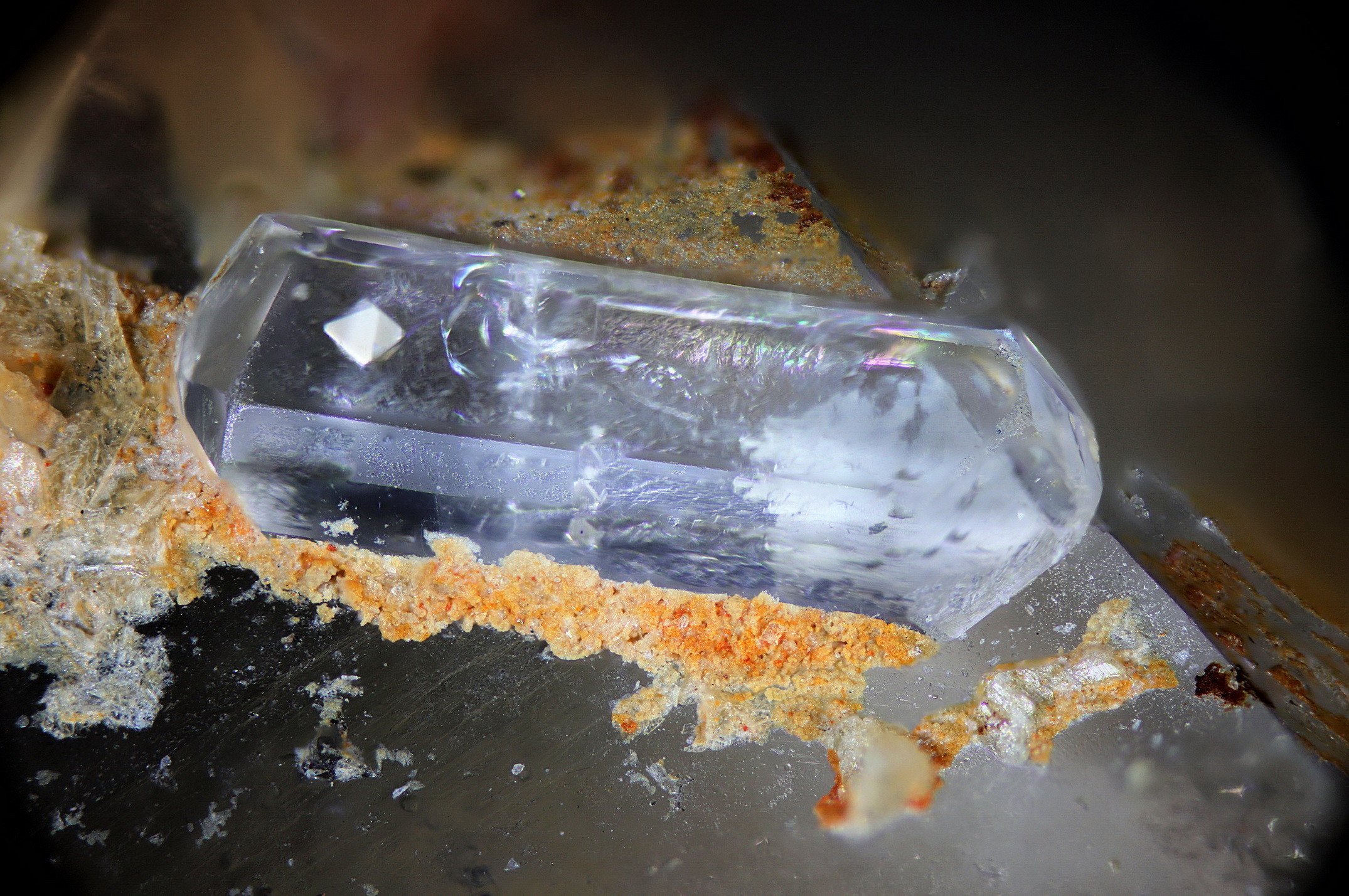 Soweit ich den einführenden Text verstanden habe, handelt es sich um einen oktaederförmigen Einschluss im Phenakit. Die Vermutung, dass es sich dabei um einen Fluorit handelt, kann ich deshalb nur unterstützen.