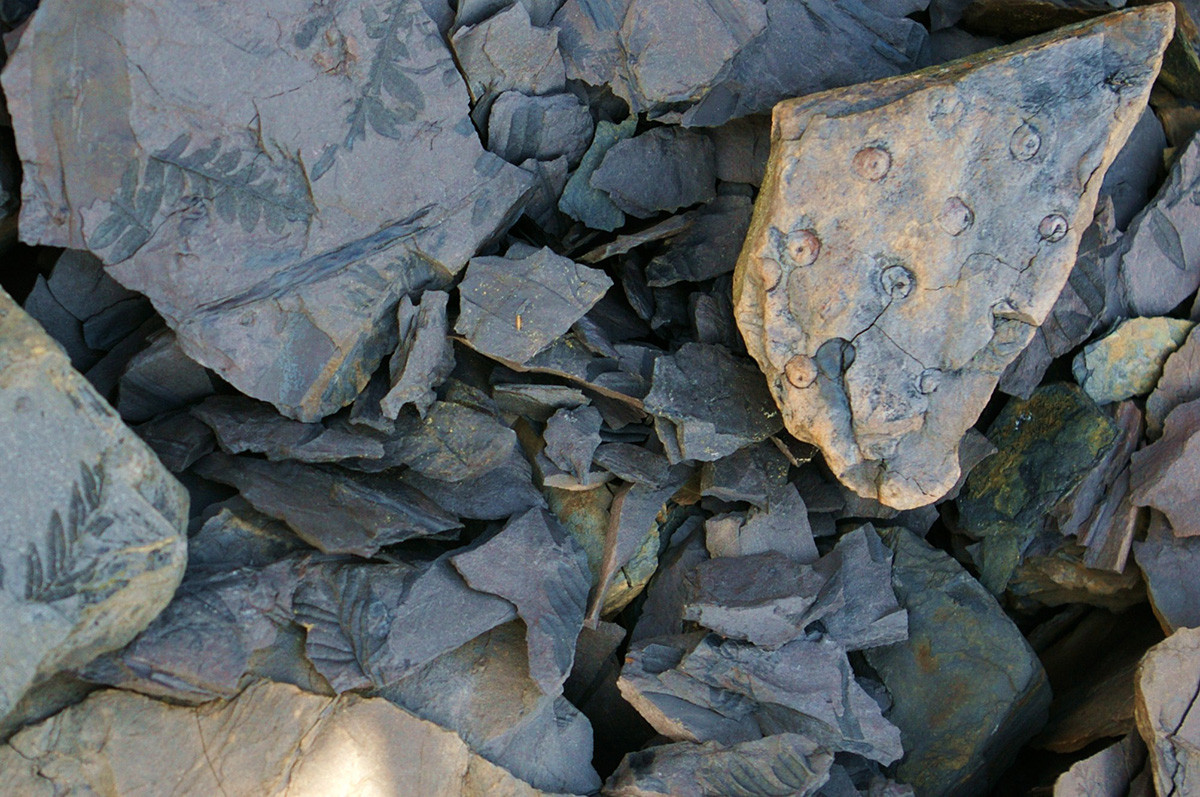 leider sieht man kaum Details, die für eine nähere Bestimmung der Samenfarnabdrücke nötig wären. Aber auf dem oberen Stein meine ich recht sicher zu erkennen, dass die Blättchen breit an der Achse herablaufend ansitzen. Auch gibt es eine ausgeprägte durchlaufende Mittelader und die Blättchen scheinen verhältnismäßig groß zu sein. Von daher würde ich sie der Formgattung Alethopteris zuordnen.