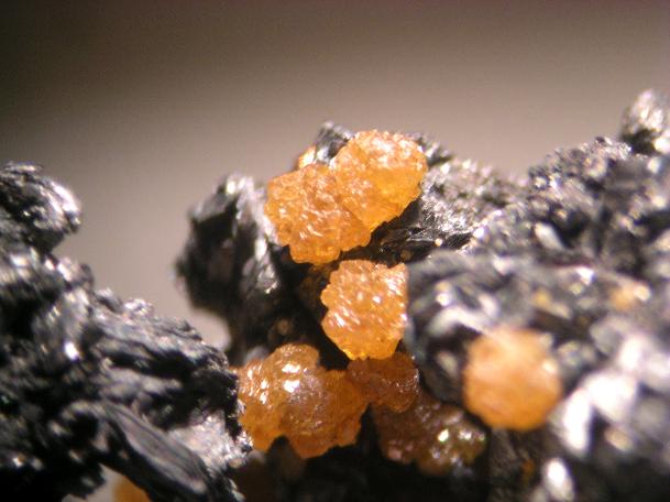 "Stufen von diesem Fundgebiet mit kugeligen gelb-braunen Aggregaten wie im Bild wurden - aufgrund der visuellen Ähnlichkeit zu den gezeigten Stücken in Lapis 5/93 - als Kettnerit angesprochen. Diese Aggregate sitzen auf Skutterudit/Bismut Matrix mit Annabergit/Erythrin, Arsenolith in Paragenese. Zuweilen sind die gelblichen Aggregate mit einer dünnen Schicht Arsenolith o.ä. belegt. Analysen haben gezeigt, dass es sich bei den gelbbraunen Aggregaten typischerweise um Sphalerit handelt. Als Handtest bietet sich die Betrachtung unter UV-Licht (365 nm) an, wobei gelbe Lumineszenz bei solchen Stücken auf Sphalerit hinweist. Gegebenenfalls empfiehlt sich aber, die Stücke zur Analyse zu geben."