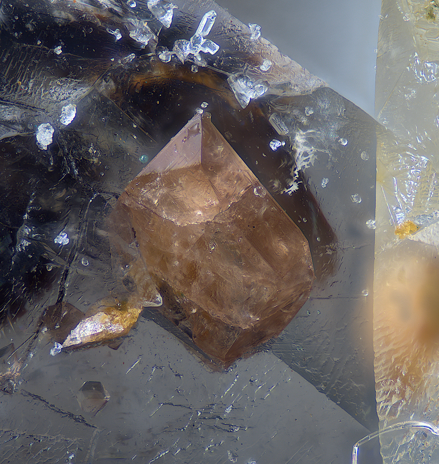 Bild 1: Titanit von den Dellen, Mendig, Eifel. Bildbreite 3,2 mm