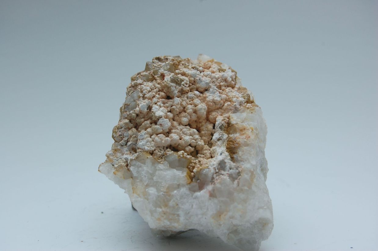 Die Stufe befindet sich zwar noch in meiner Sammlung, aber gehört nun nicht unbedingt zu denen, welche ich öfter beachte. Ich werde im Spätherbst/Winter mal wieder meine Mikrofotoausrüstung aufbauen und die gelben Barytkristalle fotografieren. Auch könnte man bei einer entsprechenden Vergrößerung die Struktur der weißen Kugeln beurteilen.