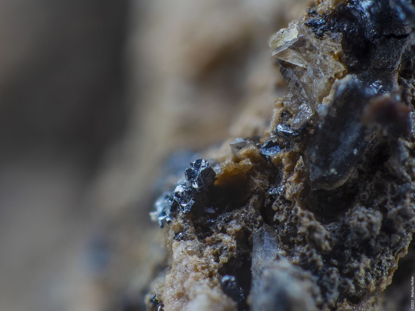 Schreibt Conrad Blömeke auch etwas von den Bildungsbedingungen? Das Stück, welches ich in Wittichen gefunden habe, ist irgend wie für mich nicht ganz nachvollziehbar. Gefunden habe ich es in dem Bereich auf der Sophiahalde, wo einstmals wohl die Erzlese stattgefunden hat. Jetzt habe ich aber nur ein einziges Bröckelchen von dem Mulmzeug gefunden. Interessant ist, dass es viele Quarzkristalle enthält, aber fast keine derben Quarzsplitter, wie man sie beim Zerschlagen von Gestein erwarten würde. Die Quarzkristalle scheinen mir keine Doppelender zu sein, haben sich also wohl nicht aus dem Mulm gebildet. Eine richtige Matrix konnte ich aber auch nicht ausmachen. Die Kristalle liegen alle wirr in dem Mulm eingebettet. Deutlich sieht man Schrumpfungsrisse. Da diese teilweise mit Silberlocken gefüllt sind, sind diese wohl schon älter. Die ganze Stufe ist besetzt/durchsetzt mit Akanthit und Silberlocken. Erst hatte ich vermutet, dass es sich dabei um Bearbeitungsrückstände der Erzlese/-aufbereitung gehandelt haben könnte. Aber warum findet sich dann nicht mehr davon? Warum hat es so viele Quarzkristalle und keine derben Quarzbrösel inkludiert? Woher kommt das reichliche Silber in dem Mulm, welche den Akanthit und das Silber ged. bilden lassen? Eine leicht erhöhte Radioaktivität lässt darüber hinaus auf fein verteilte Pechblende schließen, sicher für die Grube Sophia nicht ganz überraschend.