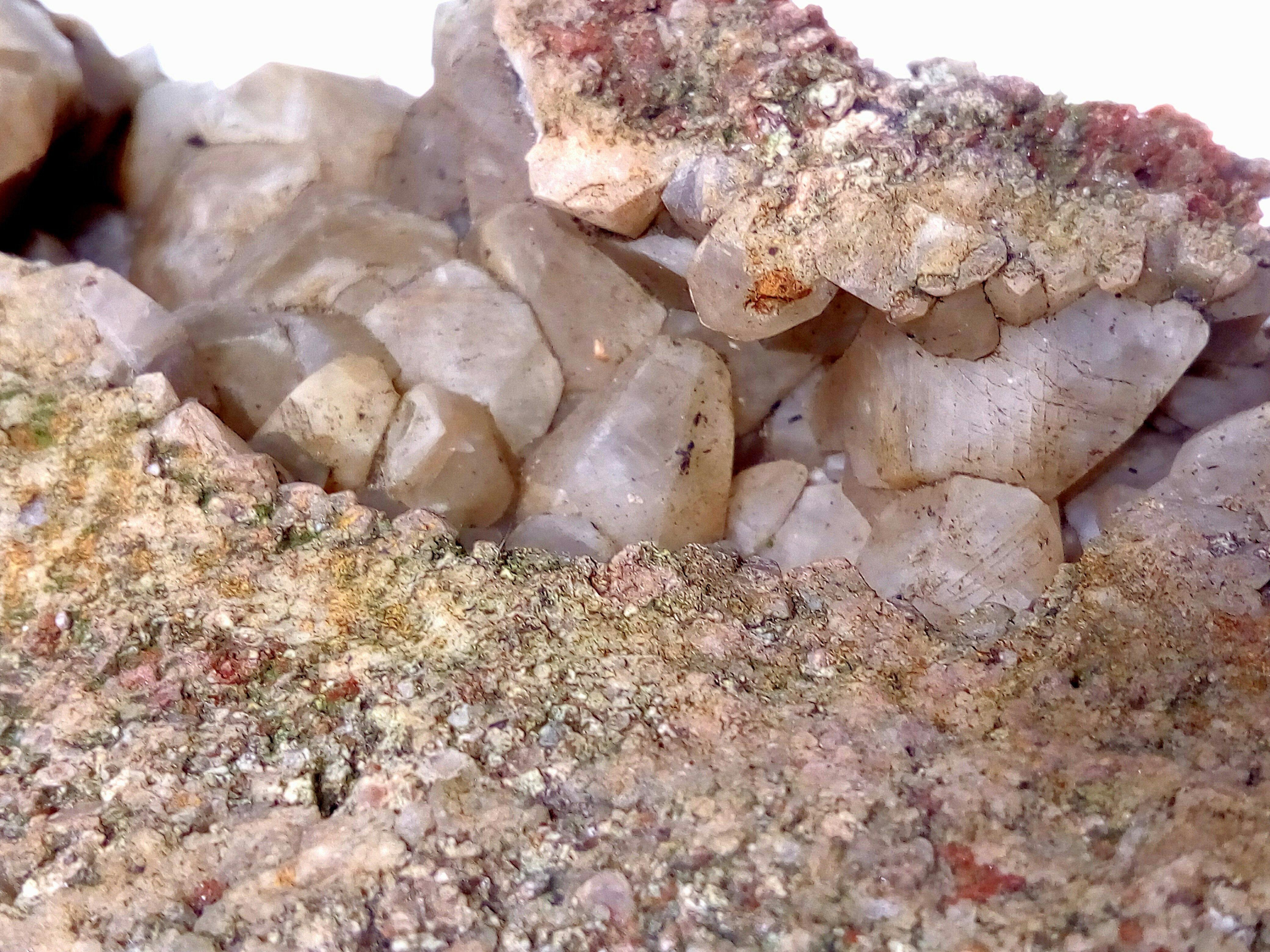 Meistens findeet mat Calcit als kleine bis mittelgröße Kristallgruppen auf z.B. Kalkstein.
