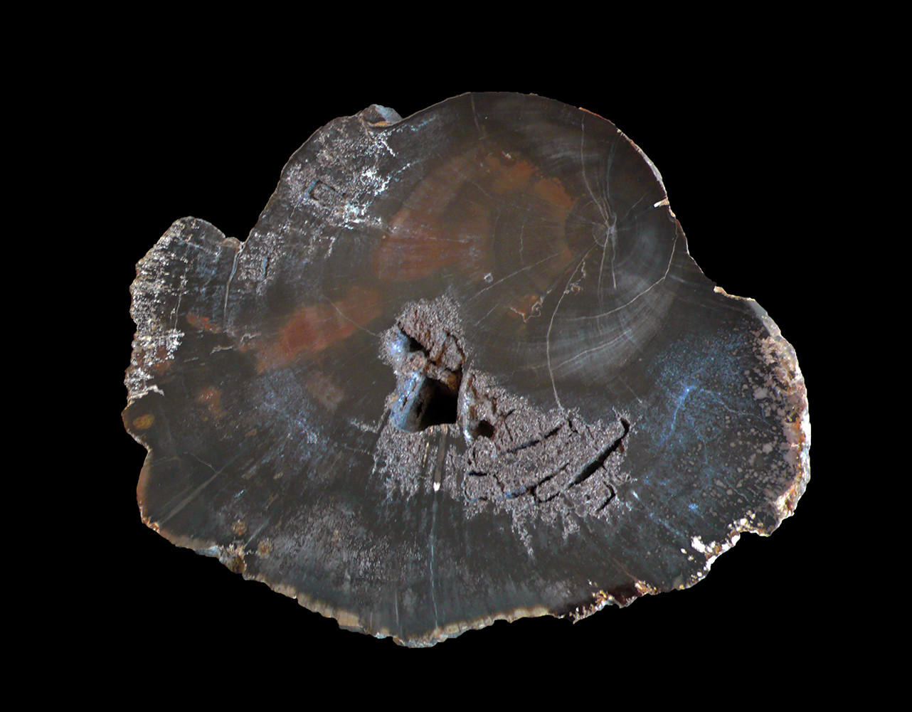 ich habe (indirekt) aus dem Nachlass des leider verstorbenen Ulrich Nickel diese Agathoxylon-Scheibe erworben:
