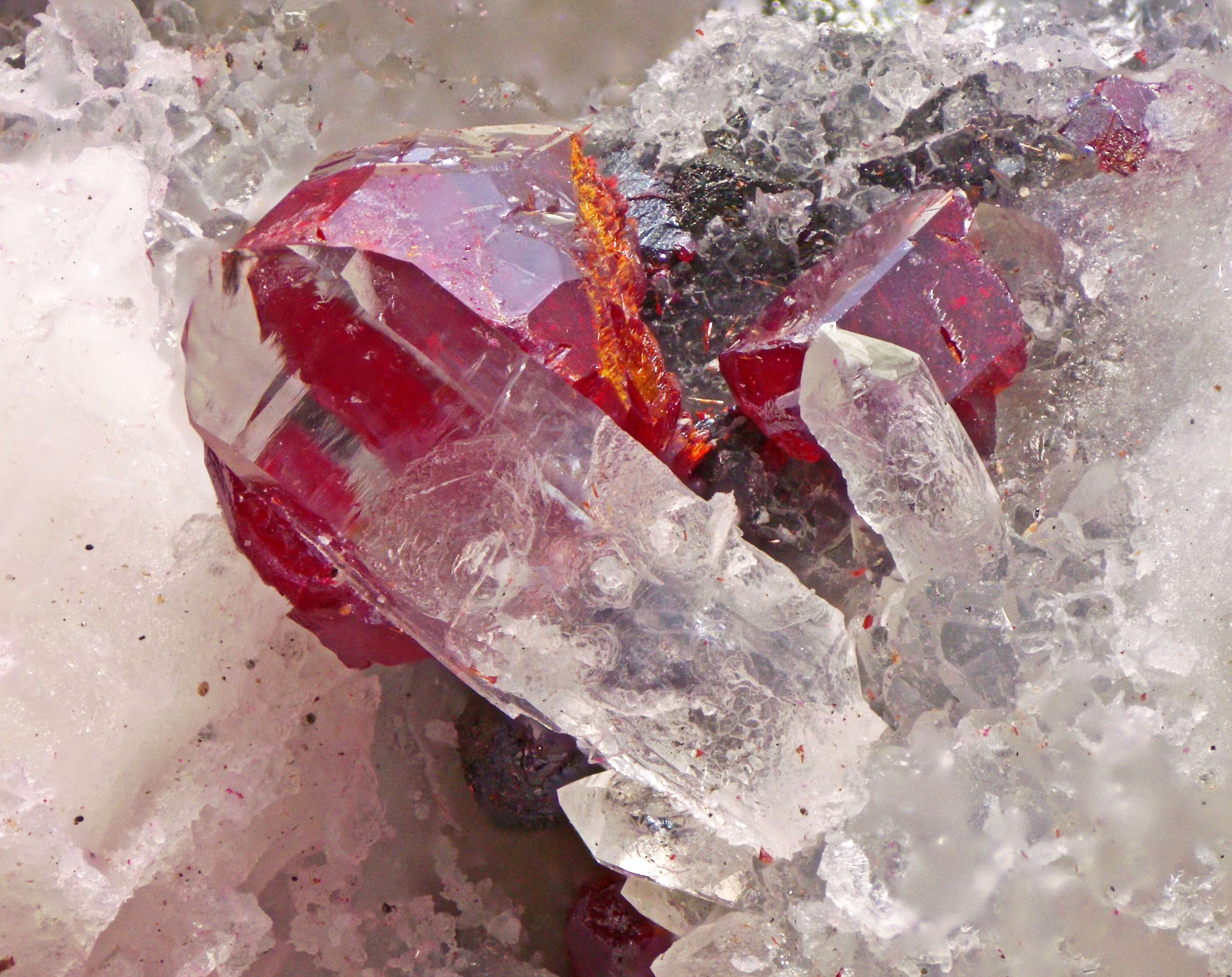 Ist das Hauptmineral auf diesem Foto wirklich Proustit? Die gelborangen Verfärbungen erinnern mich eher an Realgar.