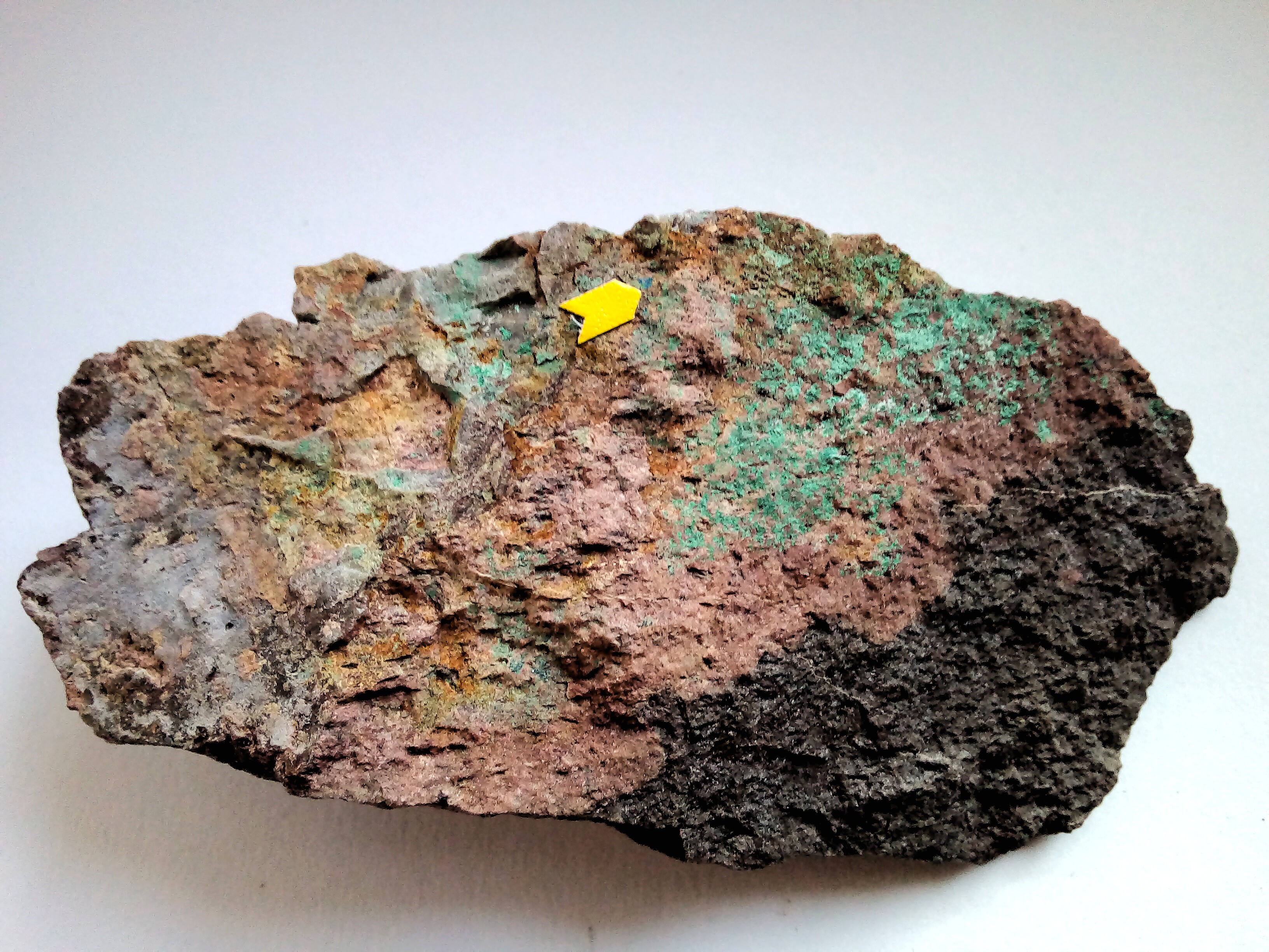 Meine Vermutung durch andere Belegstücke, die auch etwas mehr Azurit im Malachit enthalten, dass sich das Sekundärmineral Malachit aus dem Azurit umgewandelt hat. Und die blauen Krusten sind der Rest von dem Azurit.
