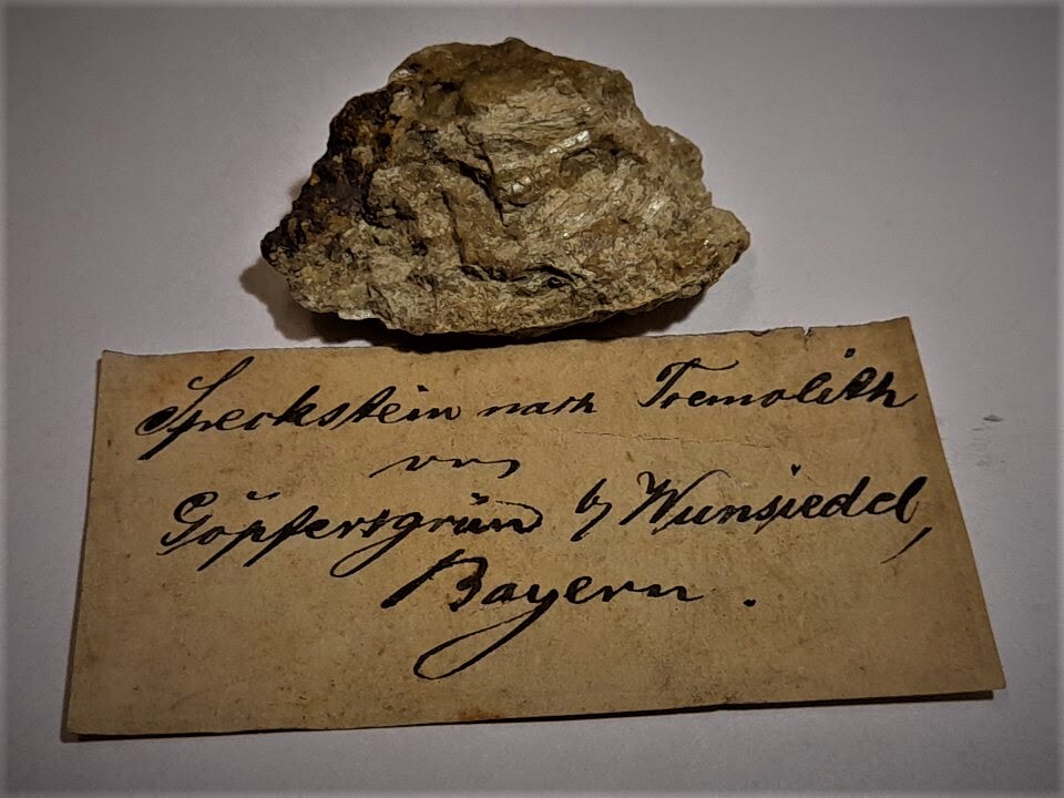 Das konnte ich inzwischen anderweitig klären. Es ist ein Etikett des bekannten Fichtelgebirgssammlers Oscar Gebhardt.
