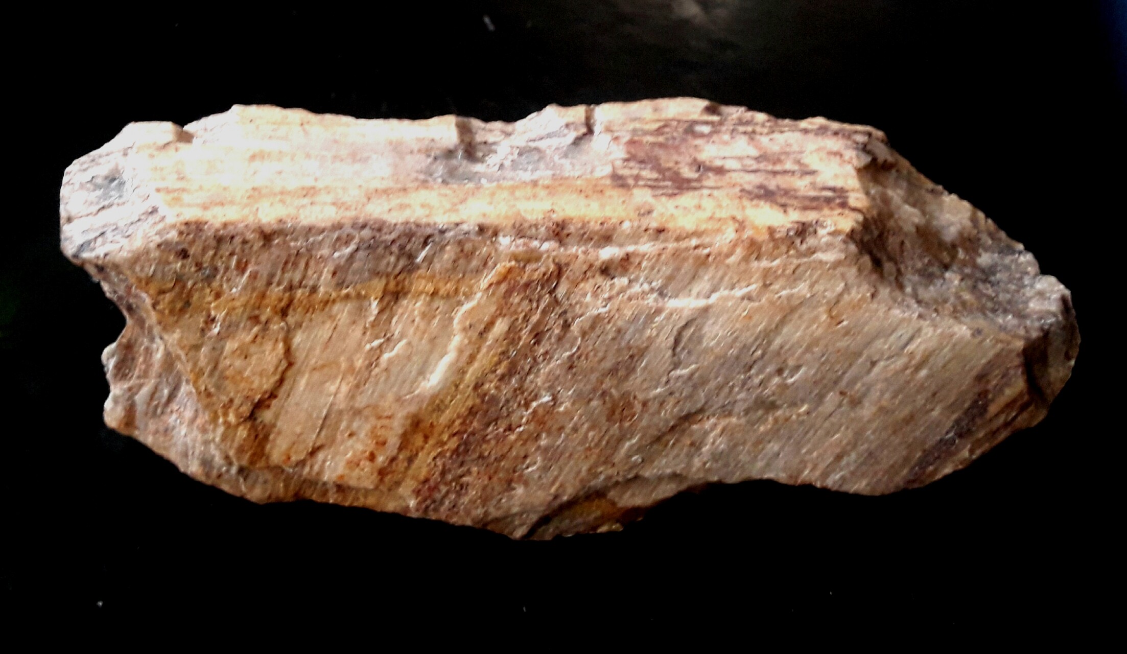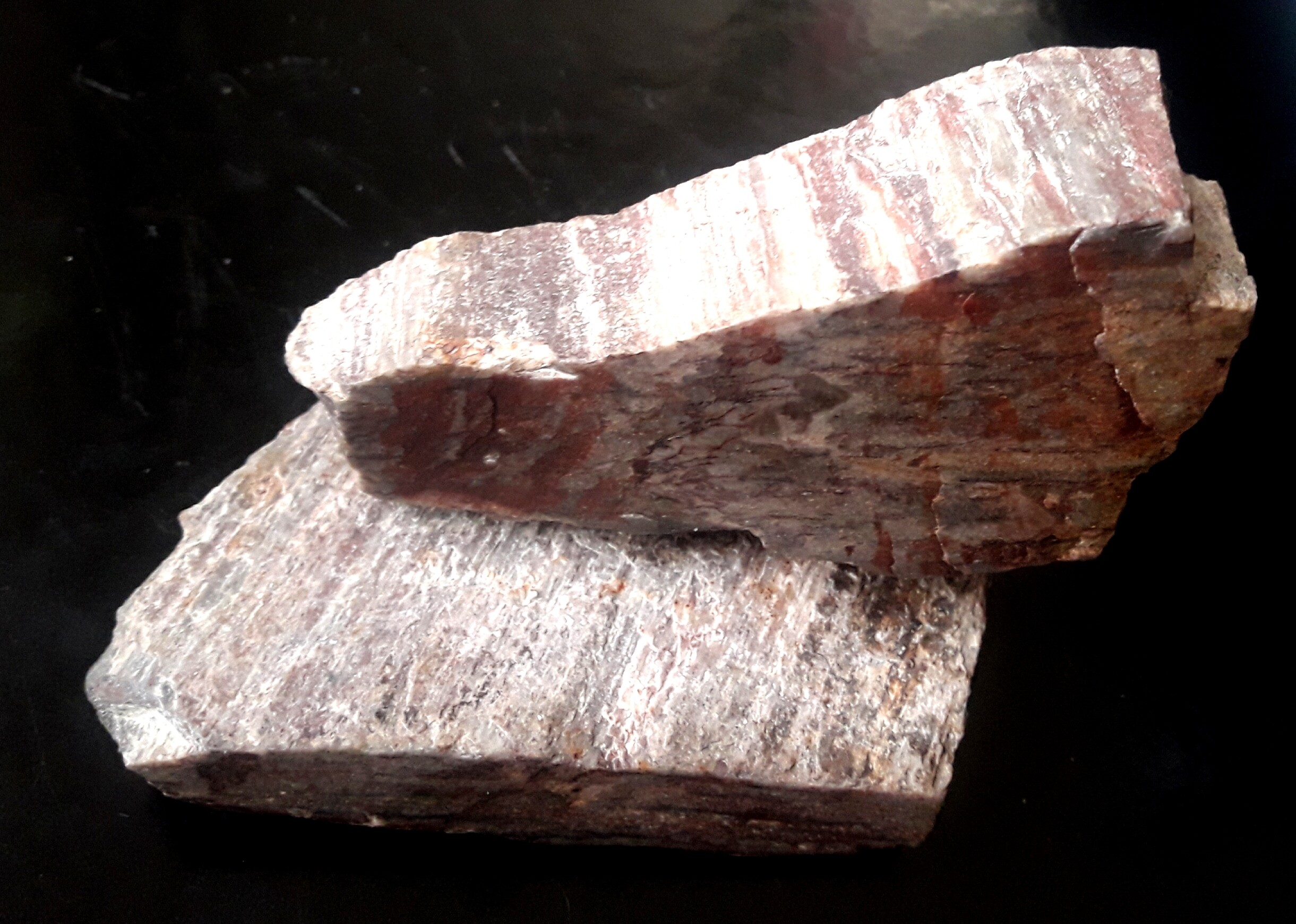 Bei den Bildern 1672237176 und 1672236333 ist das echt schwer zu sagen, ob ein ordinärer Metamorphit oder ein verkieseltes Holz vorliegt. Die Bildqualitäten geben einfach nicht genug her, um das eine sicher auszuschließen und das andere sicher zu bestätigen. Der Gesamteindruck lässt eine Zuordnung zu beiden zu. Ohne Mikroskop kann man es oft wirklich nicht entscheiden bei diesem Fundgebiet. Die Metamorphite sind eigentlich schnell zu identifizieren. Wobei man es weniger am Mineralbestand festmachen würde, sondern wirklich auf das Gefügebild schauen muss. Glimmer ist nicht immer vorhanden, selbst Feldspat oft sehr untergeordnet, aber der Quarz ist eben gröber kristallin und zeigt haufenweise Druckmarken und oft ein flammiges Bild. Die gestreiften, oft plattig wirkenden Schieferflächen sehen für das bloße Auge tatsächlich aus wie Texturen, die man auch bei verkieselten Hölzern von der Fundregion so sehen kann - allerdings weniger oft, als man es denken mag. Die meisten verkieselten Pflanzenmassen sind echt gut verkieselt zu einem dichten Chalcedon. Oberflächig zeigen sie viel muscheligen Bruch. Eine bräunlich-graue Farbe ist oft der einzige erste Hinweis. Leider ist die Zellerhaltung oft dürftig bis spärlich erkennbar und wird auch bei guten Anschliffen nicht besser sichtbar.