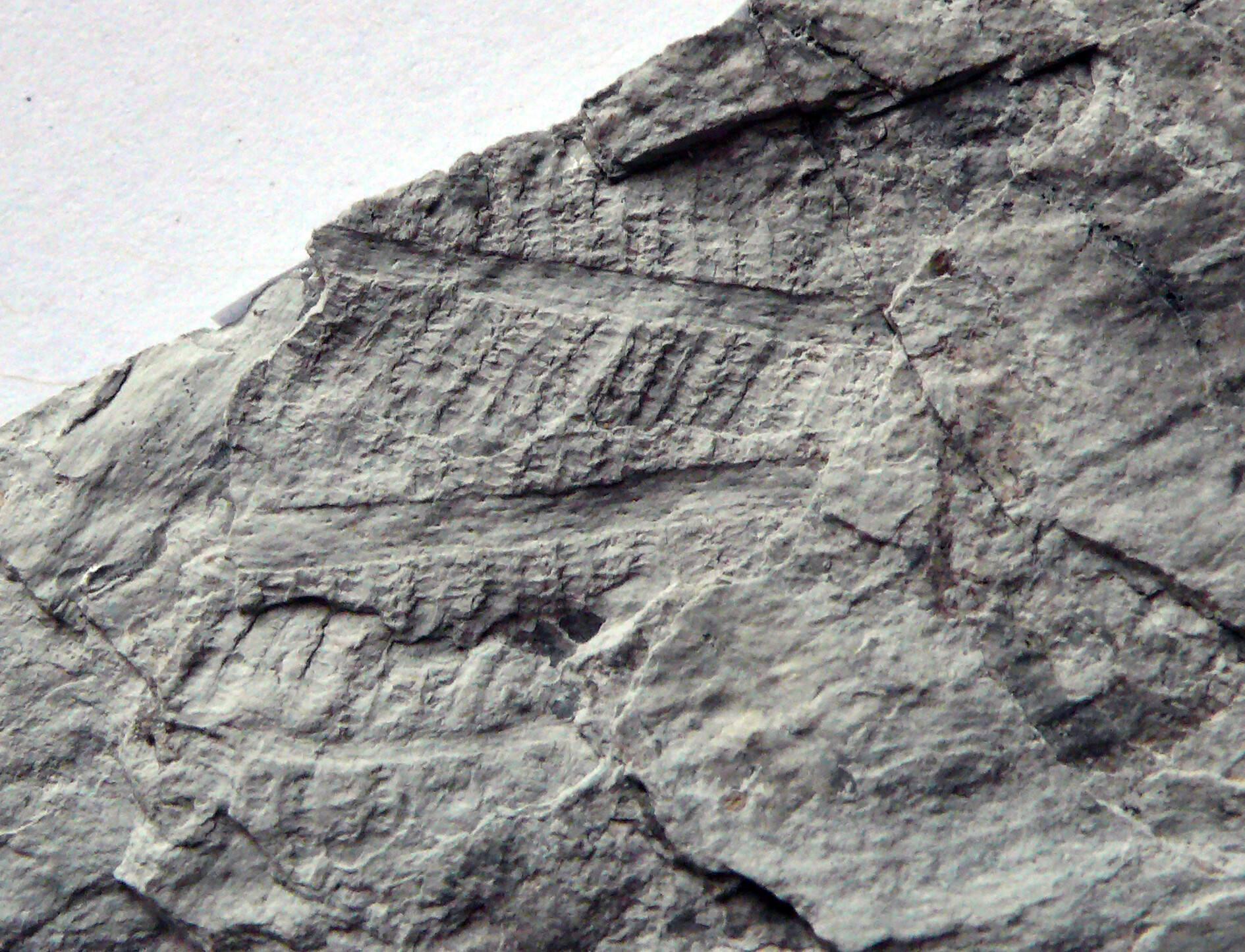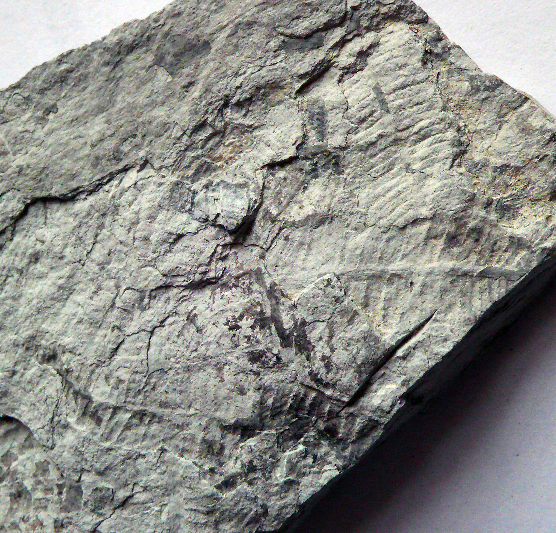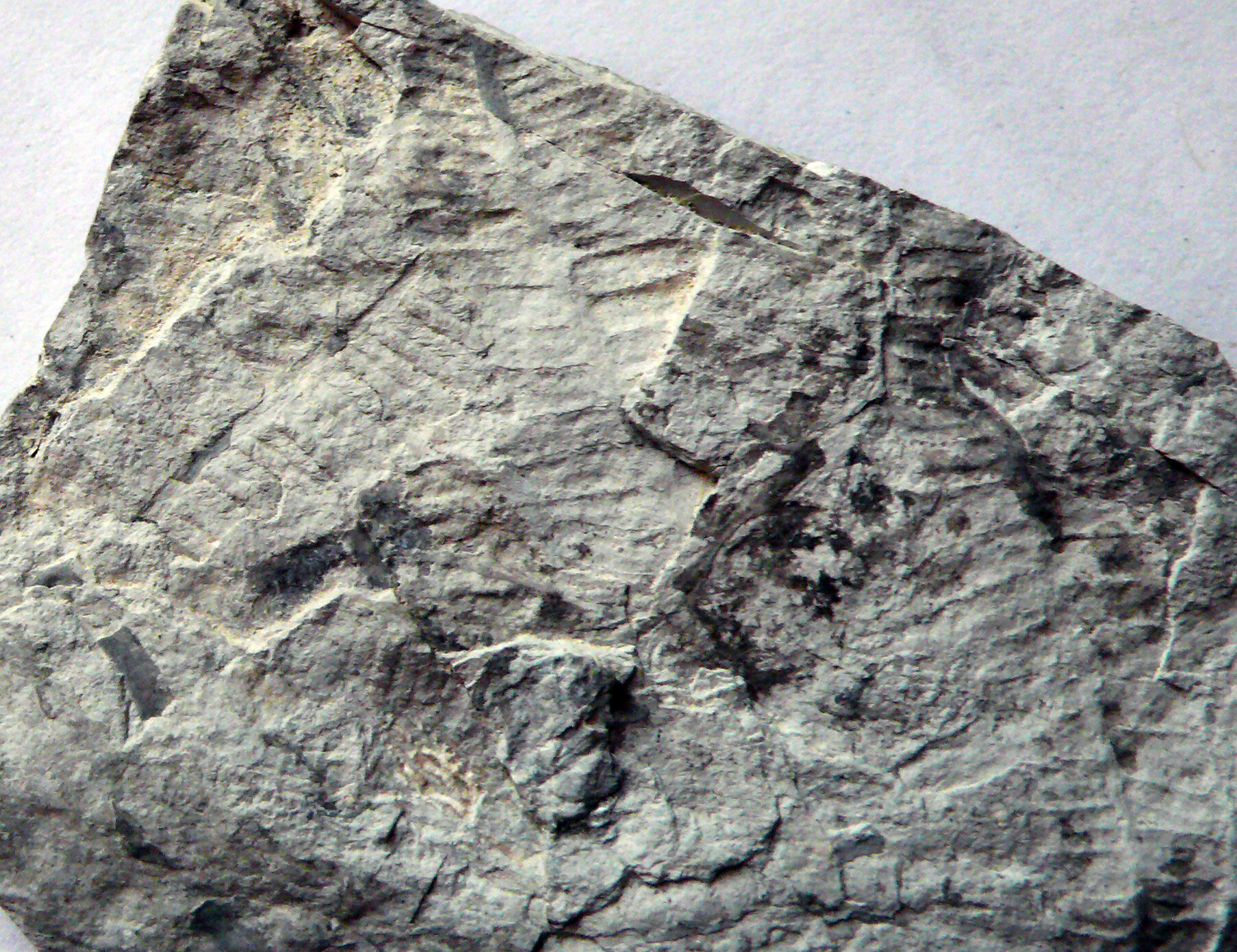 Ist zwar nicht aus Sachsen, sondern aus Thüringen (also zumindest in der Nähe), und es ist auch kein klassischer „Madenstein“, sondern silifizierter Tuff (also wieder mal mehrfach OT) – aber zumindest handelt es sich um (vermutlich) Scolecopteris in einem Kieselgestein: dichte Lagen von Farnfiederchen(-abdrücken) im fein laminierten Gestein. Nochmals herzlichen Dank an Werner, von dem ich die guten Stücke vor einiger Zeit bekommen hatte! Mit der Bestimmung als Scolecopteris bin ich mir nicht ganz sicher (und Werner hatte die Fossilien korrekterweise auch nur als „Farnfiederchen“ bezeichnet), aber nach oftmaliger Betrachtung tendiere ich doch am ehesten zu Scolecopteris – bin diesbezüglich aber für Anregungen und ggf. Korrekturen natürlich wie immer offen. Und vorsichtshalber hab ich die Zuänderung mal auf "Psaroniaceae" verallgemeinert.