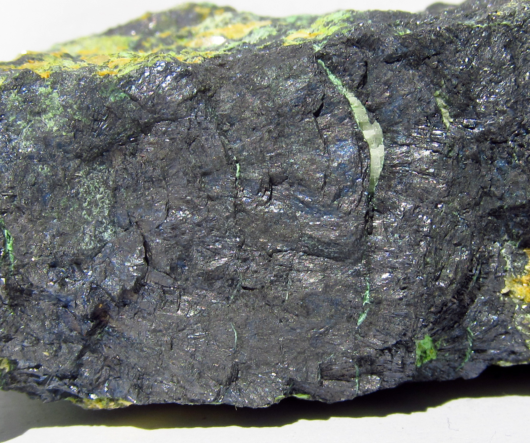 Ich liefere heute keine allzu schönen Bilder, dafür ist die Stufe ganz putzig. Pararammelsbergit vom Steinbruch Heimberg. Die Aggregate sind durch "Annabergit-Sicheln" begrenzt.
