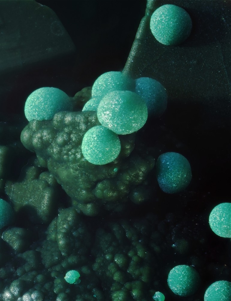 Thomsonit vom Steinbruch Maykranz, bei Langd, im Vogelsberg, Hessen. BB ca. 1-2 mm.
