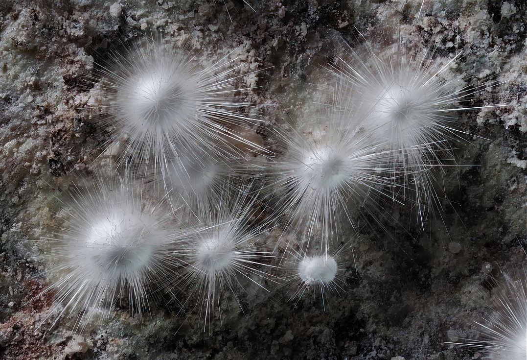 Hier mal eine 7x5 cm grosse Stufe mit Natrolith xx vom Basaltbruch auf dem Zeilberg bei Maroldsweisach in Unterfranken.