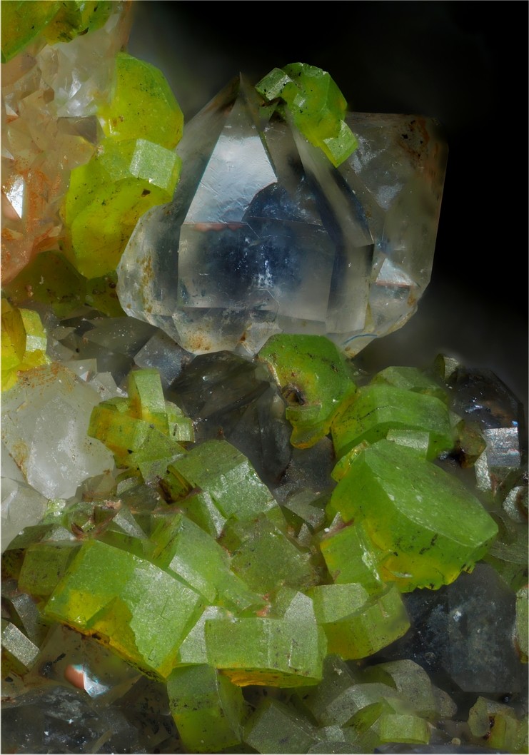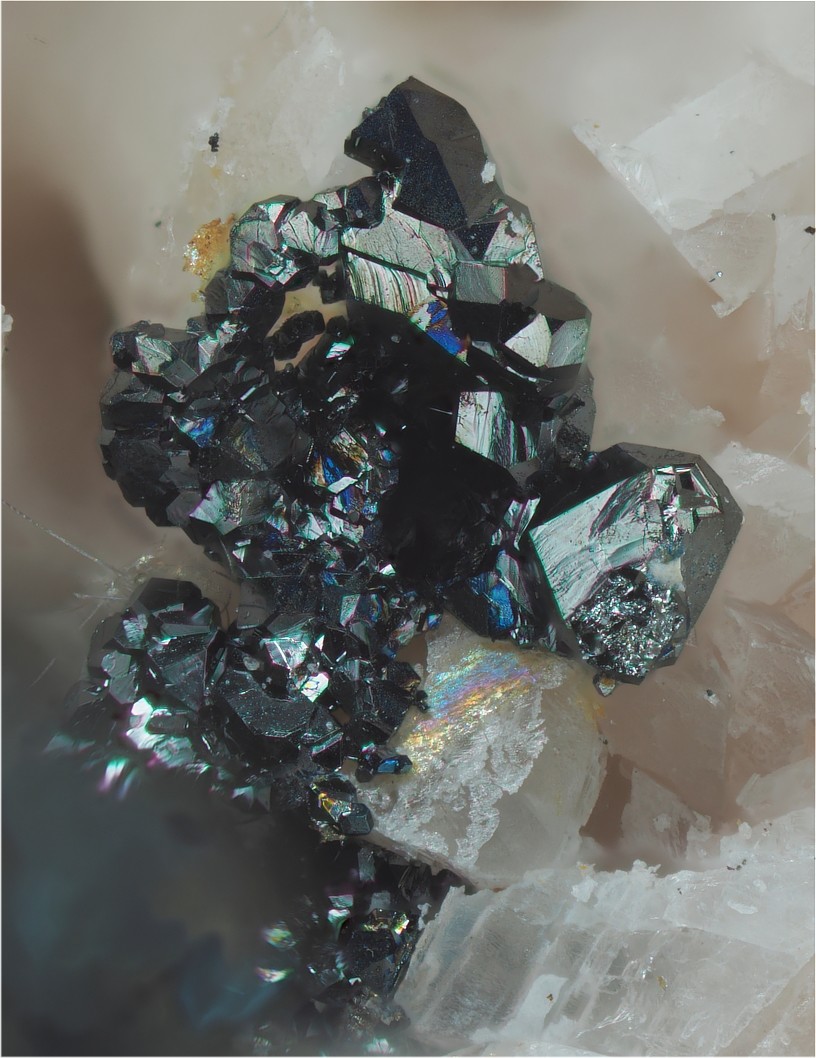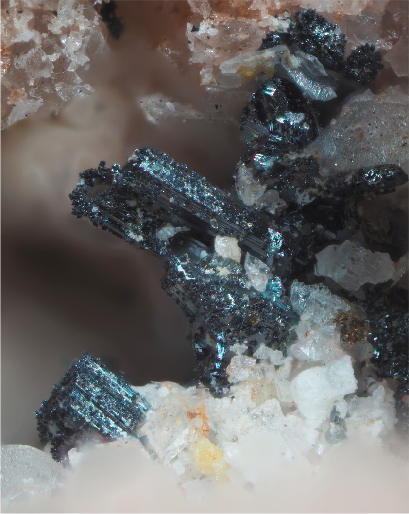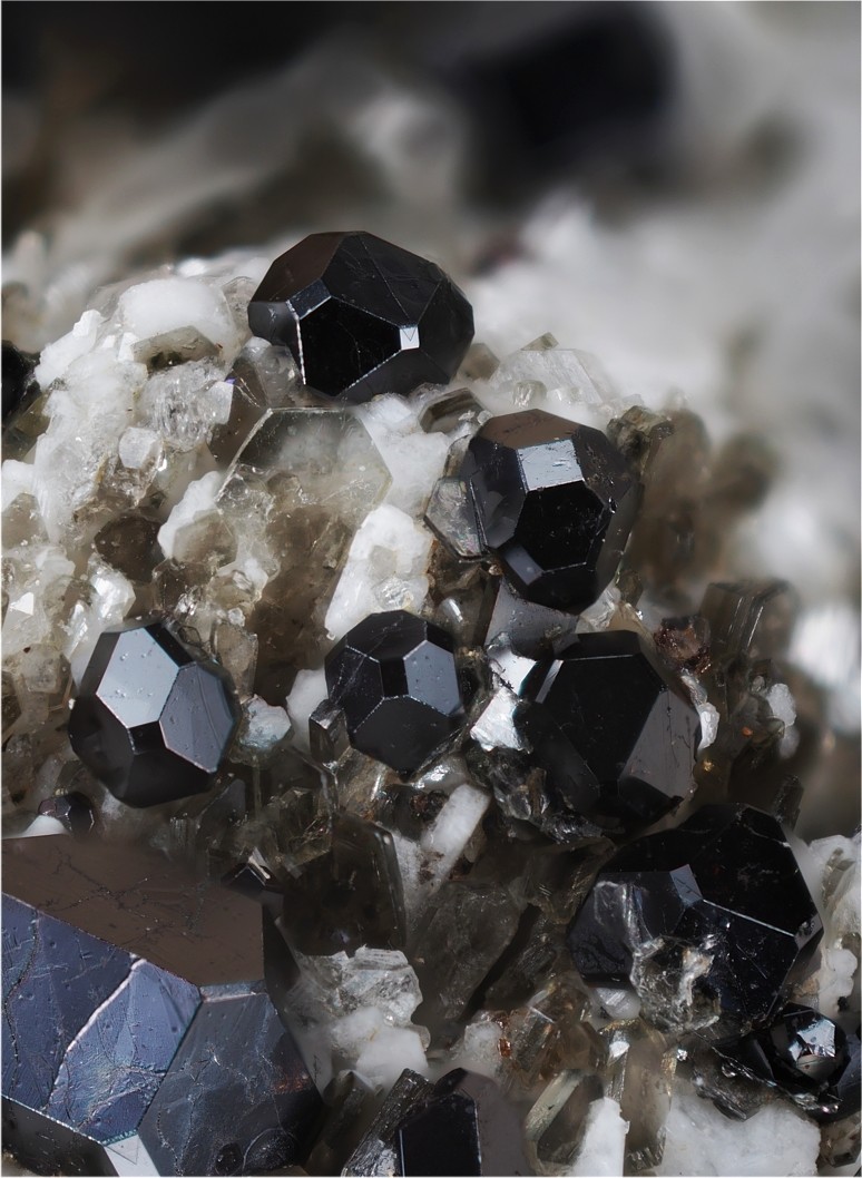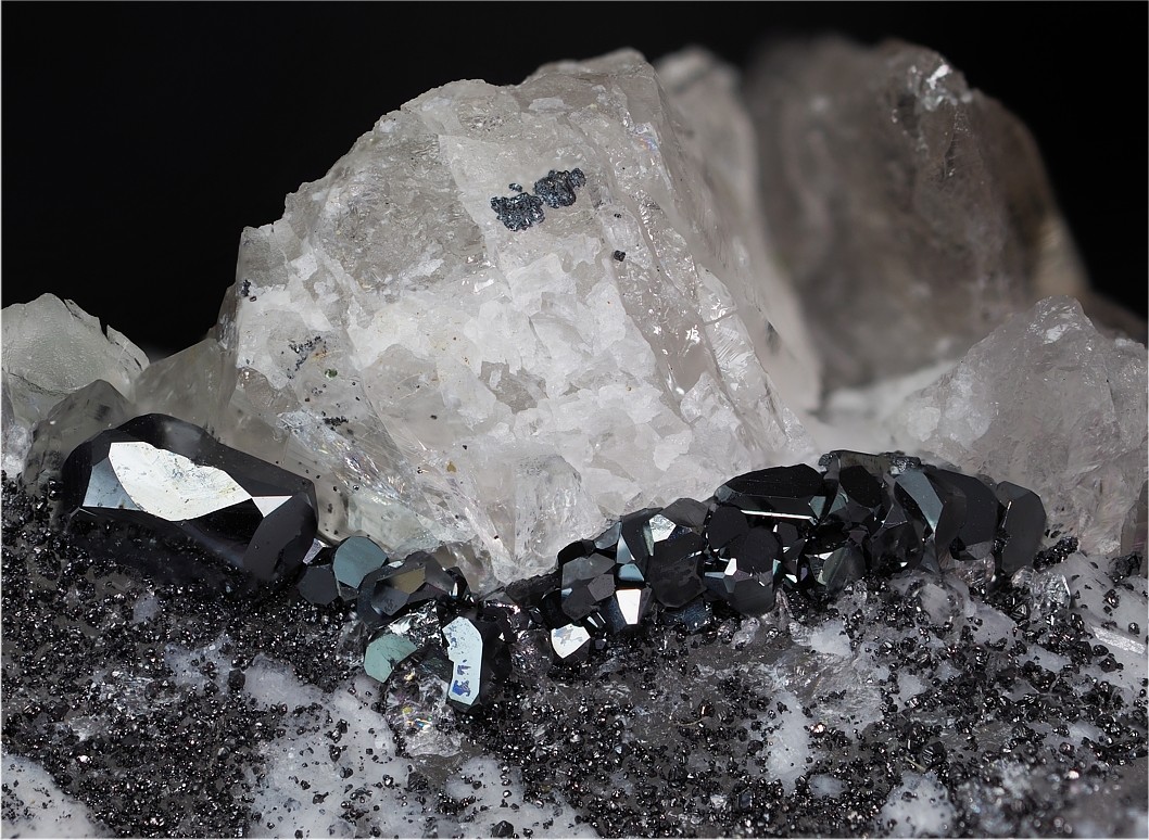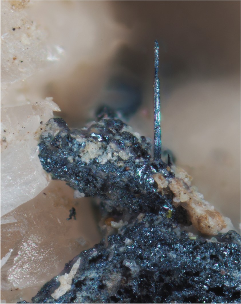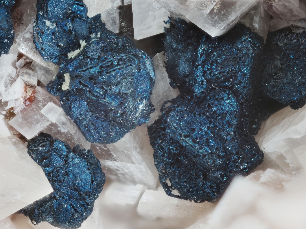 Dein Bild überzeugt jetzt durch graphische Elemente (Große diagonale Bildteilung in Grau und Blau, die gegenläufige Diagonale wird durch Formwiederholung kleinerer Elemente (schräge Kanten der Kristalle) ebenfalls ins Spiel gebracht), durch eine Drei-Gliederung in der Tiefenstaffelung von vorne nach hinten (Quarz, Linarit, Grau) und farblich durch eine interessante, vibrierende blaue Tönung der Kristalle.