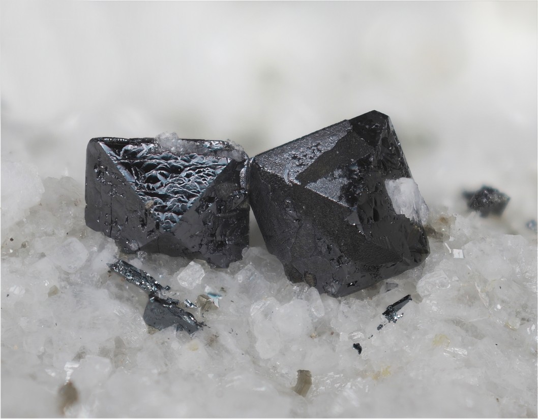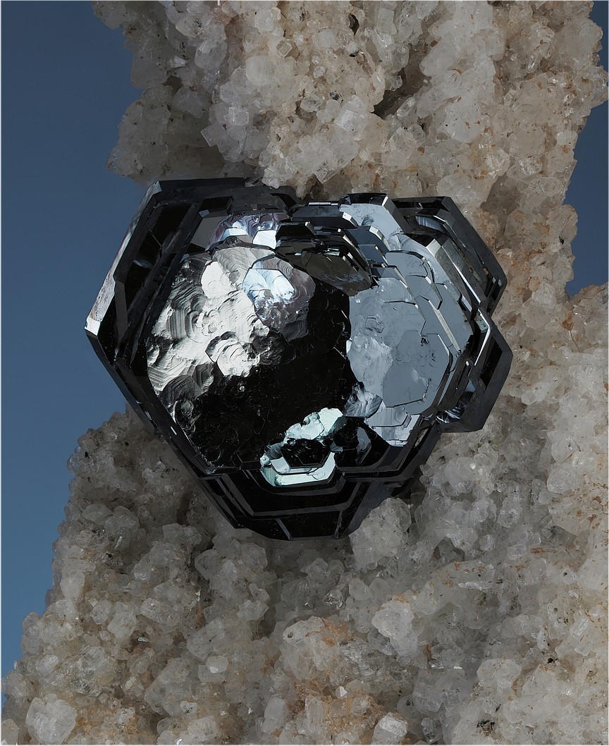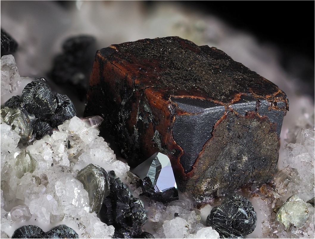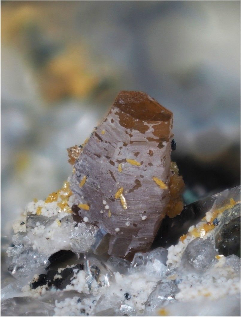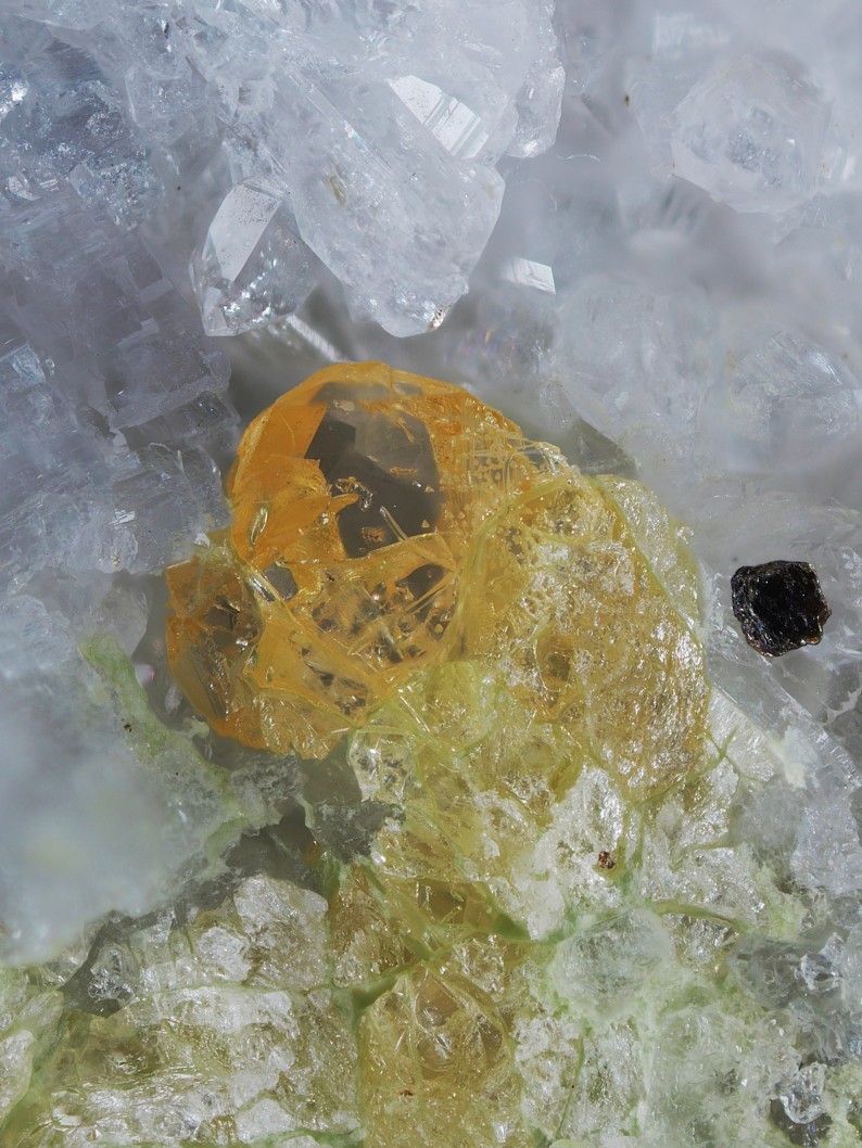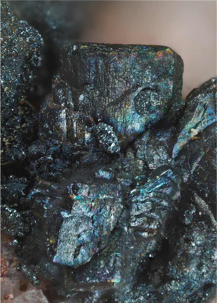 Dein Bild überzeugt jetzt durch graphische Elemente (Große diagonale Bildteilung in Grau und Blau, die gegenläufige Diagonale wird durch Formwiederholung kleinerer Elemente (schräge Kanten der Kristalle) ebenfalls ins Spiel gebracht), durch eine Drei-Gliederung in der Tiefenstaffelung von vorne nach hinten (Quarz, Linarit, Grau) und farblich durch eine interessante, vibrierende blaue Tönung der Kristalle.