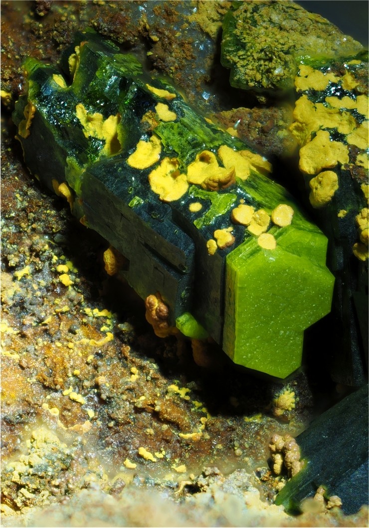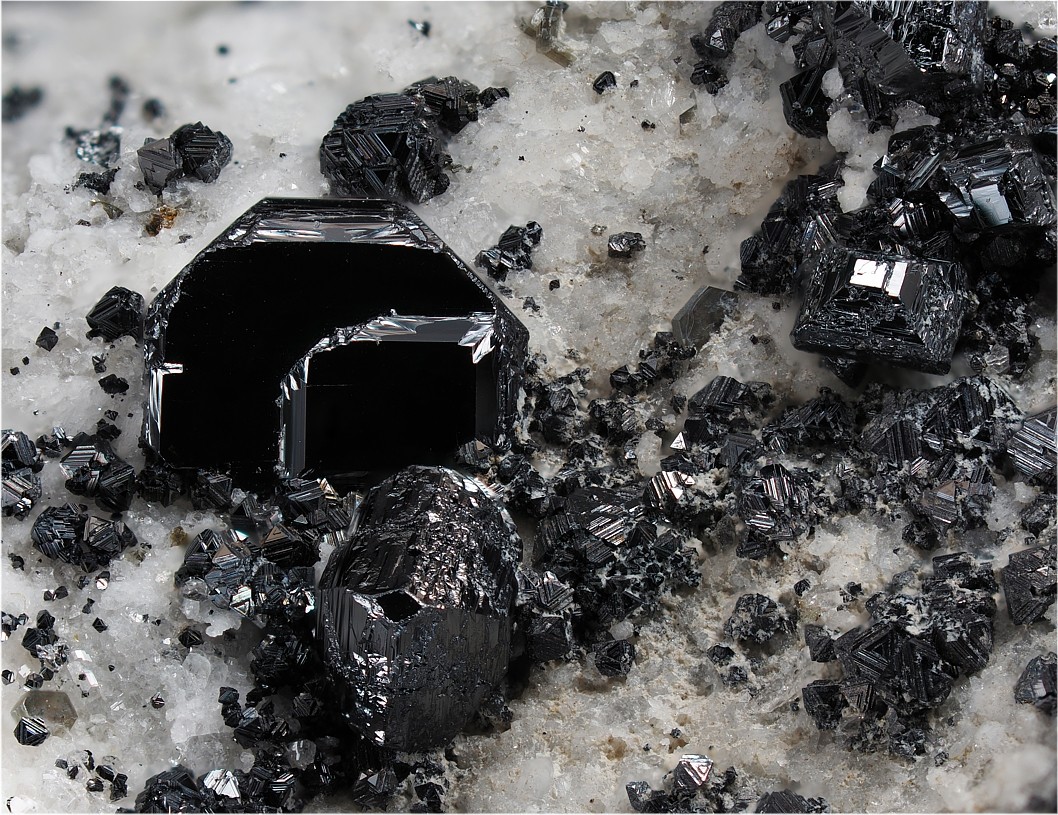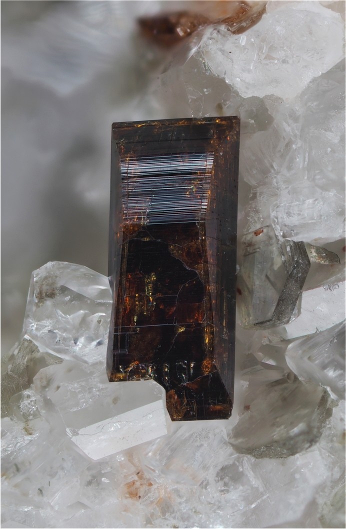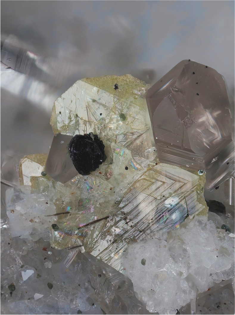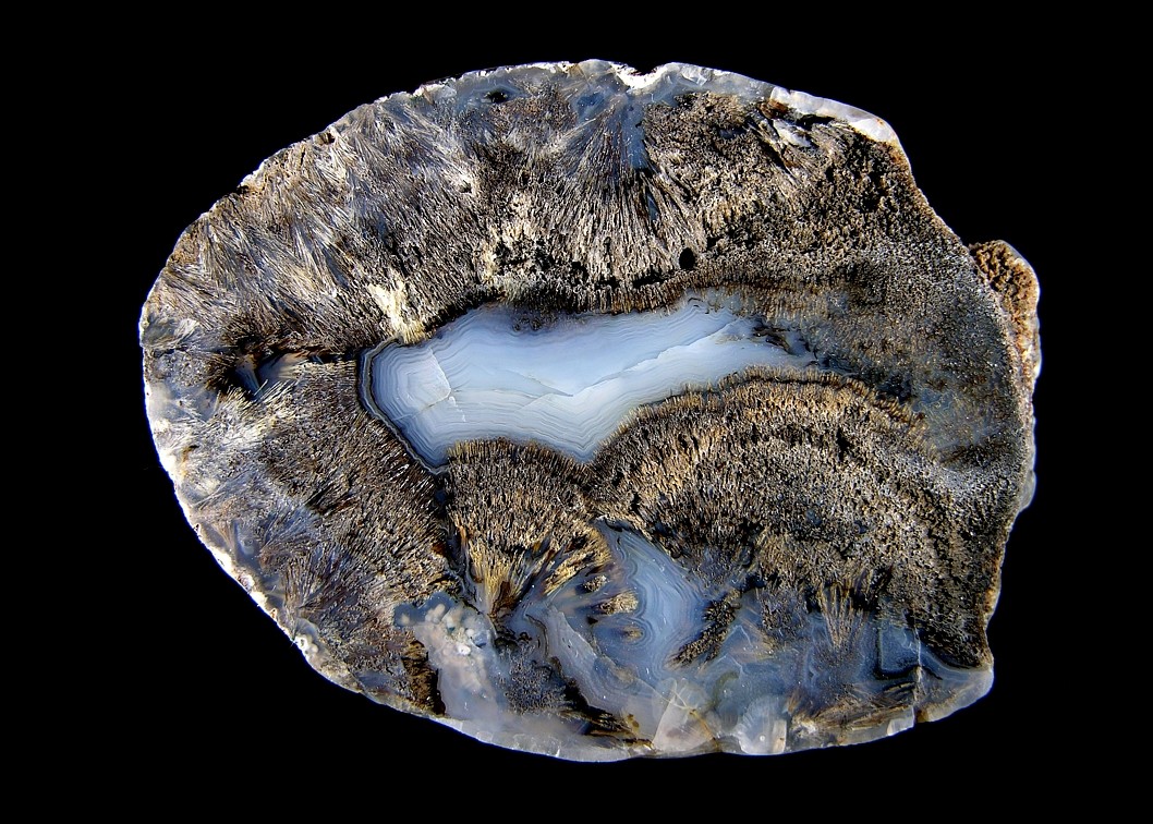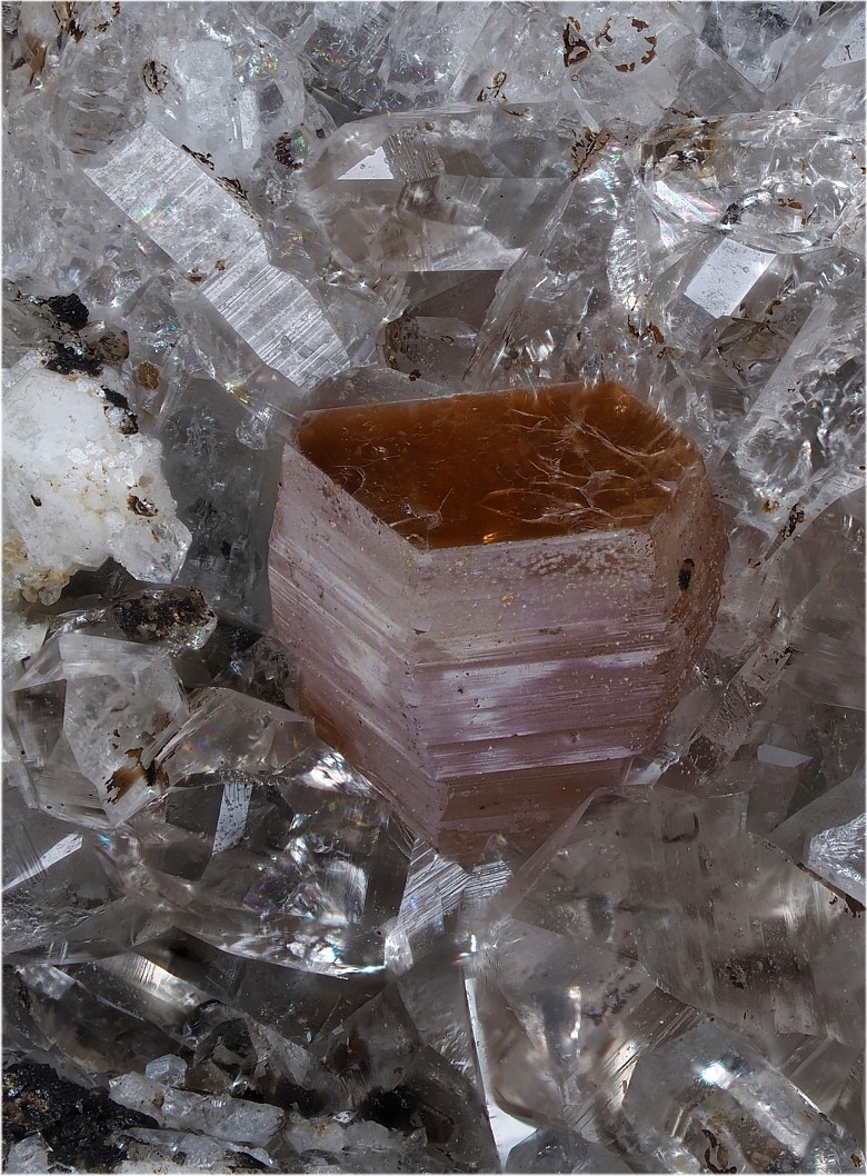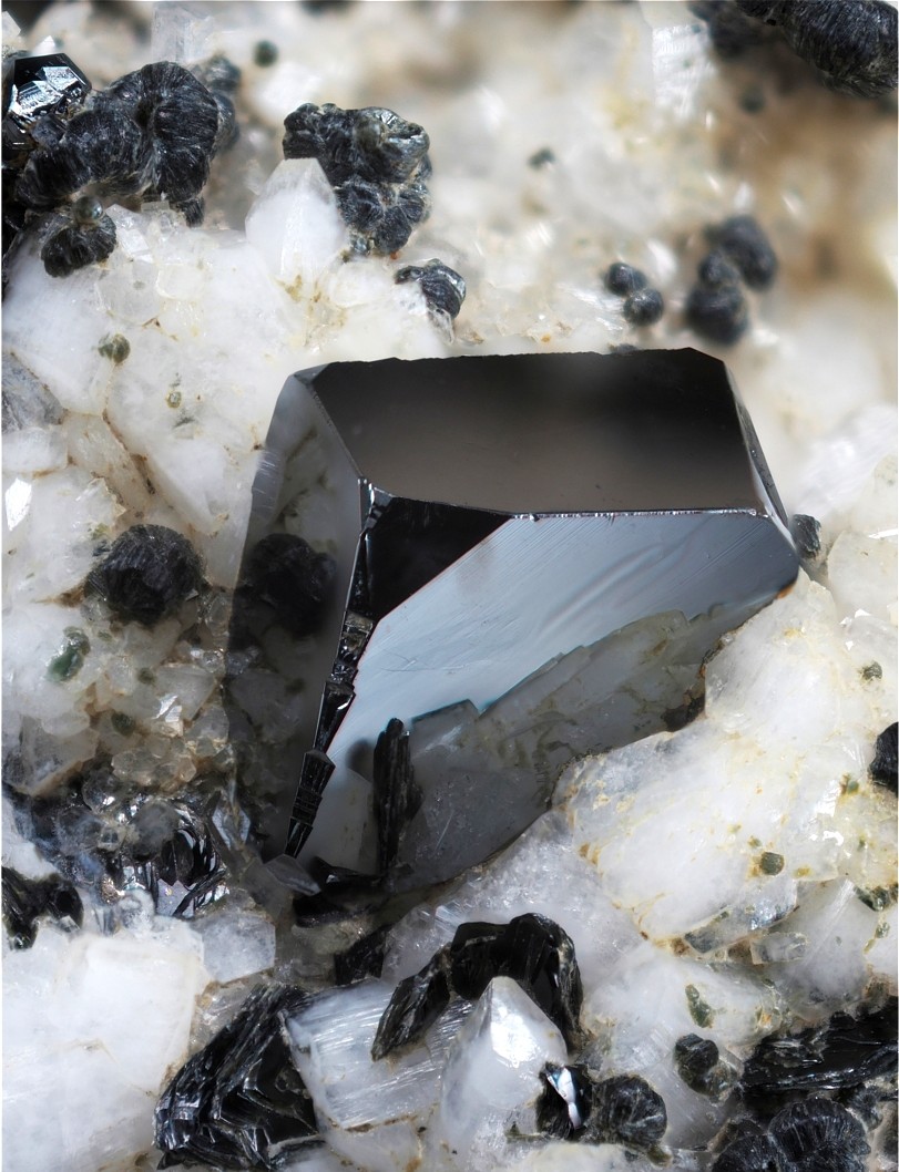 Dein Bild überzeugt jetzt durch graphische Elemente (Große diagonale Bildteilung in Grau und Blau, die gegenläufige Diagonale wird durch Formwiederholung kleinerer Elemente (schräge Kanten der Kristalle) ebenfalls ins Spiel gebracht), durch eine Drei-Gliederung in der Tiefenstaffelung von vorne nach hinten (Quarz, Linarit, Grau) und farblich durch eine interessante, vibrierende blaue Tönung der Kristalle.