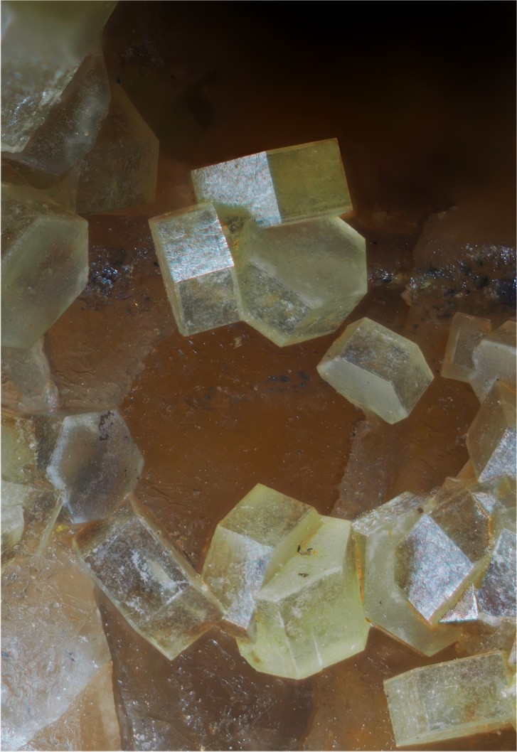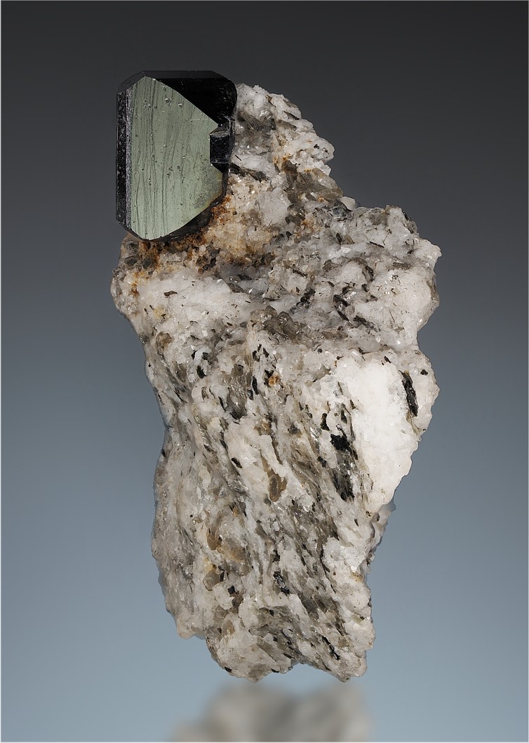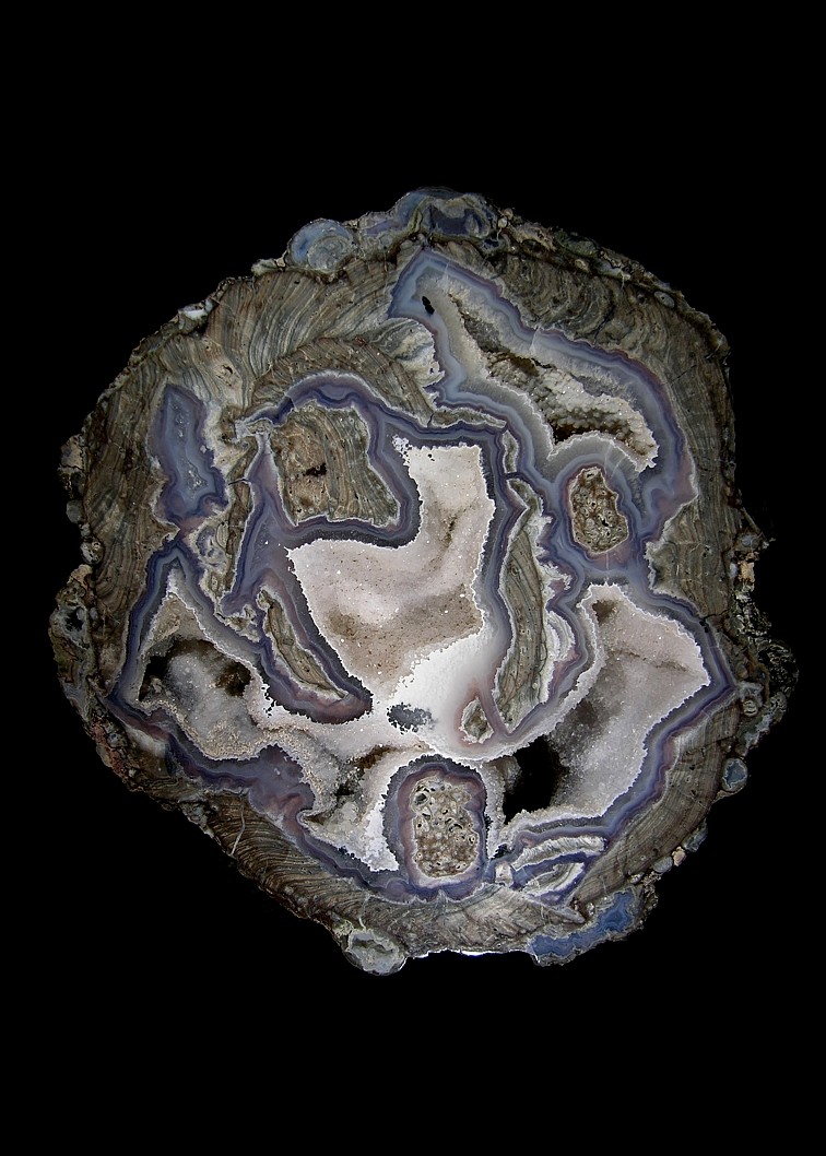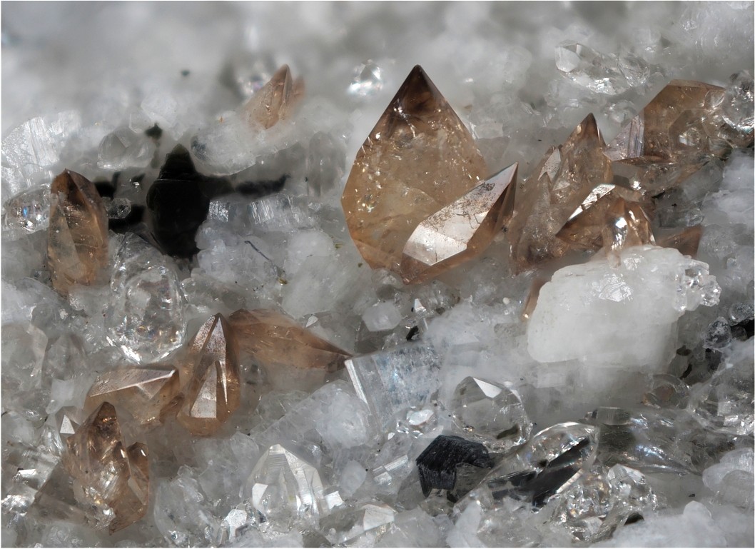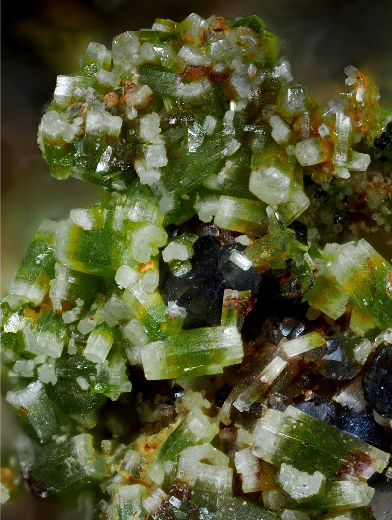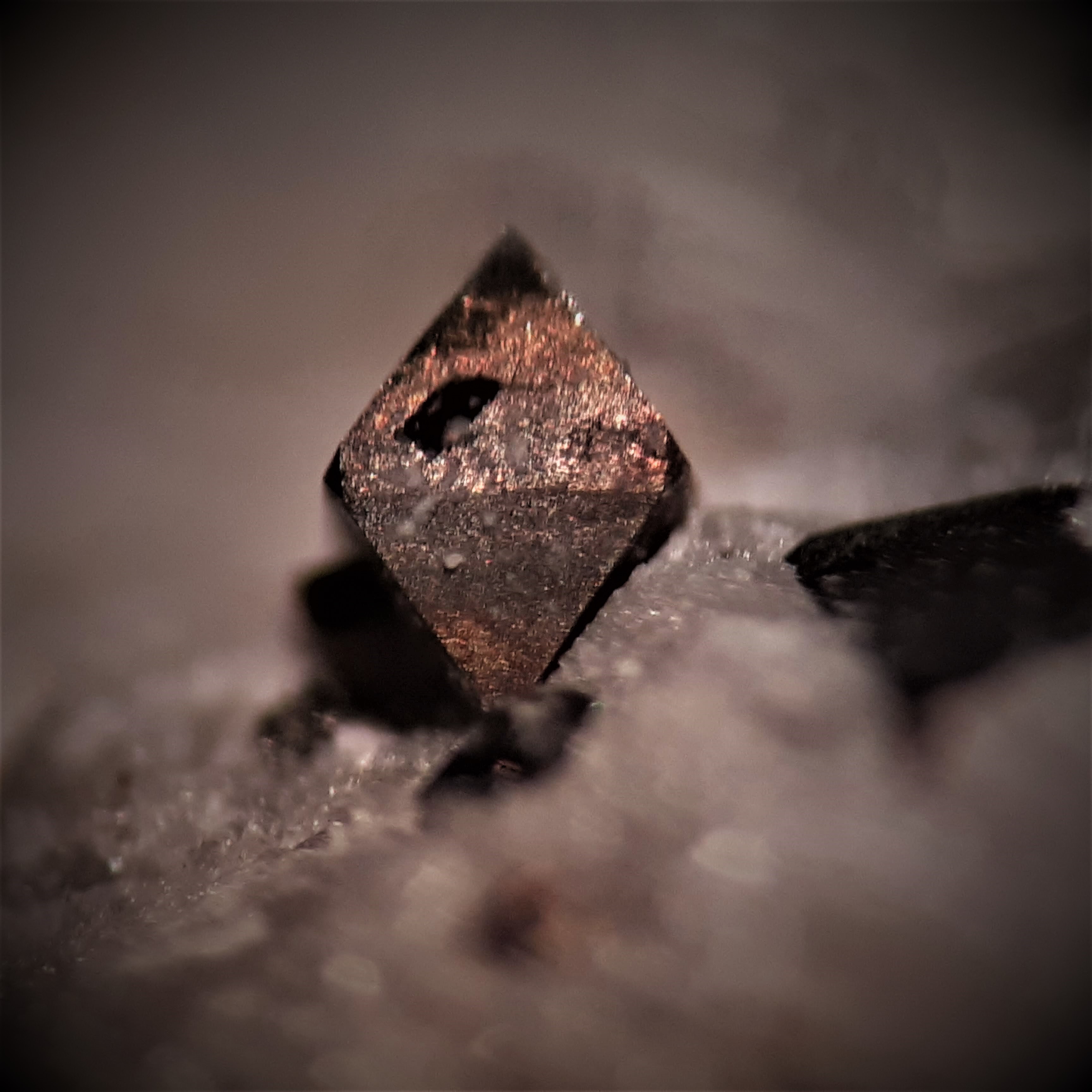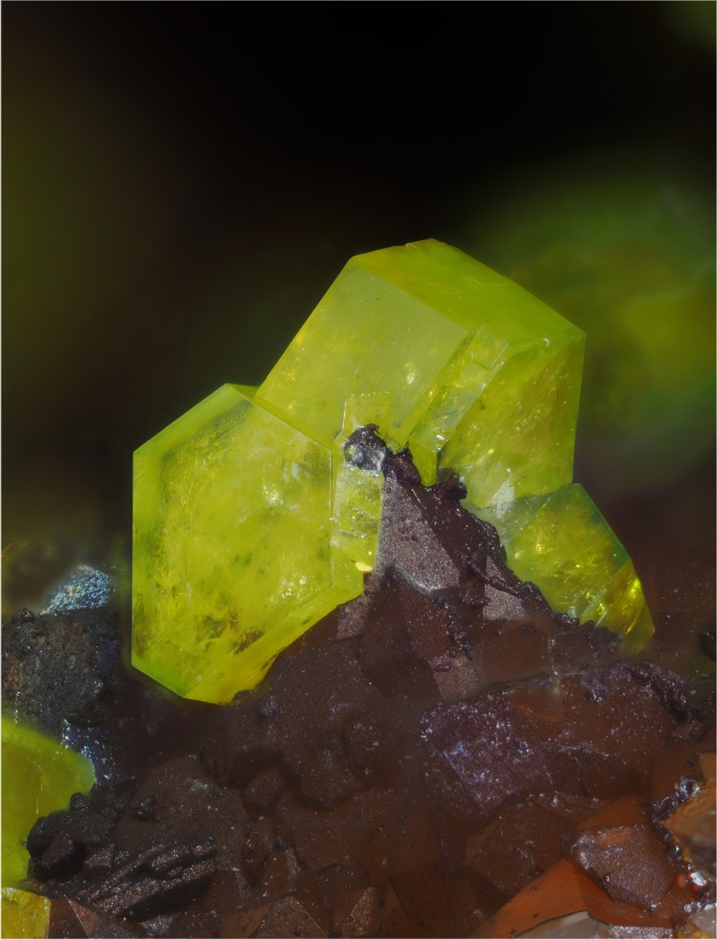 Dein Bild überzeugt jetzt durch graphische Elemente (Große diagonale Bildteilung in Grau und Blau, die gegenläufige Diagonale wird durch Formwiederholung kleinerer Elemente (schräge Kanten der Kristalle) ebenfalls ins Spiel gebracht), durch eine Drei-Gliederung in der Tiefenstaffelung von vorne nach hinten (Quarz, Linarit, Grau) und farblich durch eine interessante, vibrierende blaue Tönung der Kristalle.