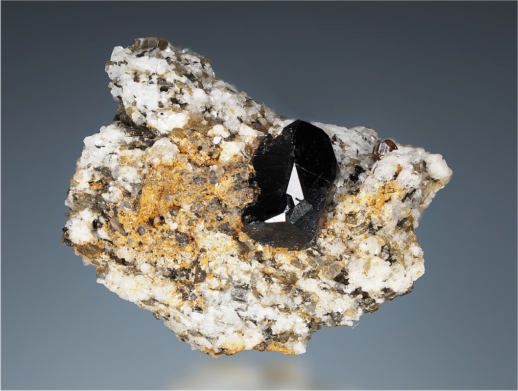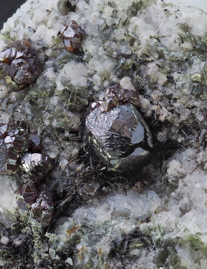 Die Rhomboeder dürften Arsenopyrite sein (typisch mit Durchdringunszwillinge)
