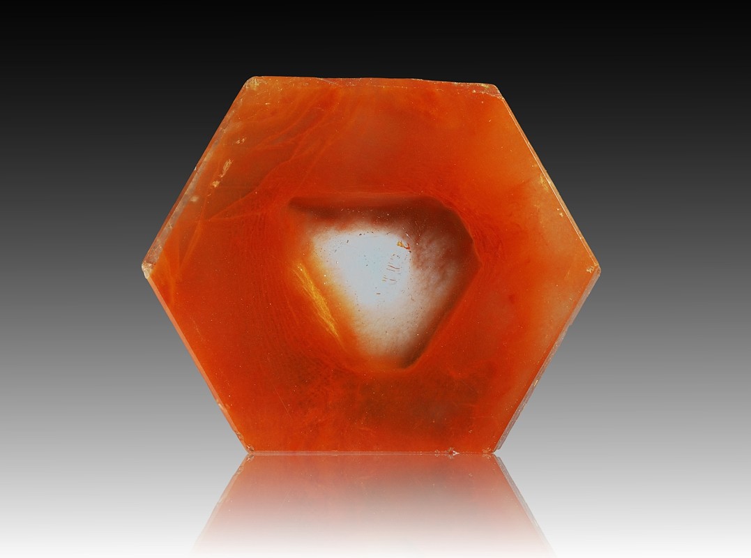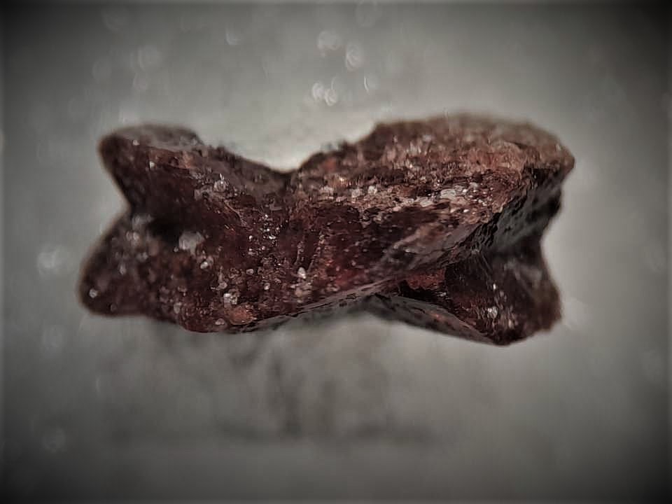 Einen 1 cm grossen Monazit-Zwilling aus Brasilien hab ich mal seitlich und von oben abgelichtet.