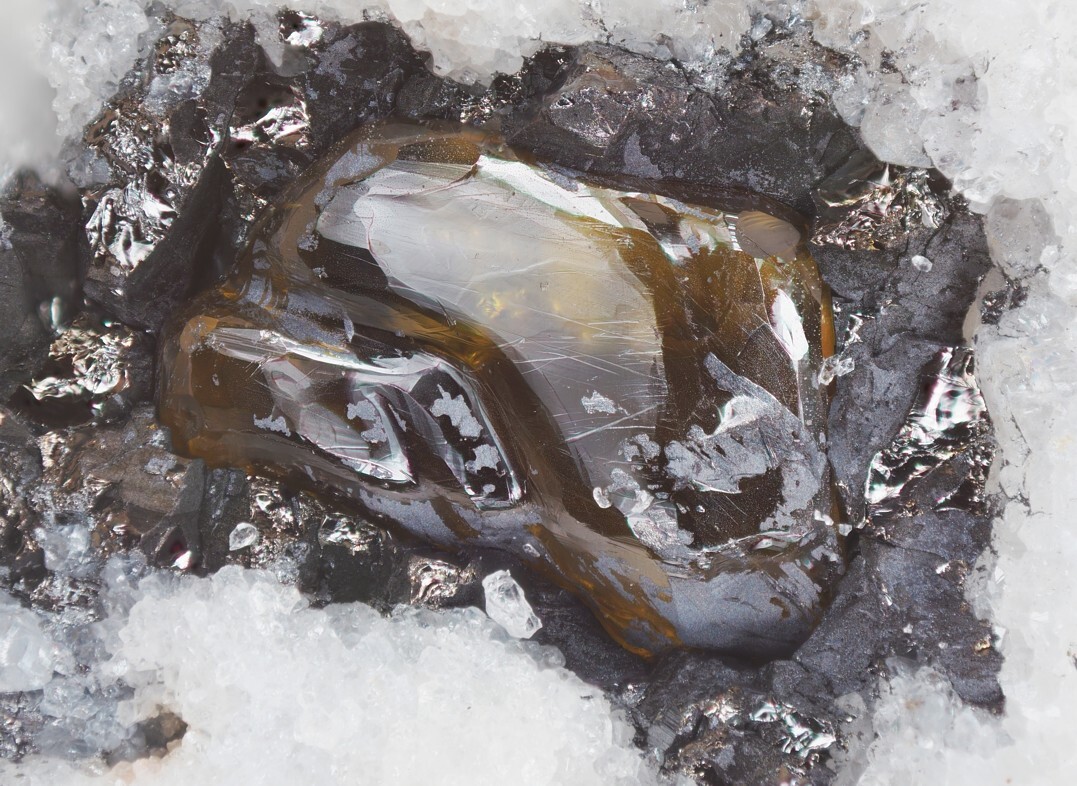 Es ist verblüffend, welche unterschiedlichen Kristallformen Zinkblende am Lengenbach ausbildet. Zudem sind die Kristalle meist eisenarm und deshalb auch schön hell und transparent. Die rundlichen Formen finden sich am Lengenbach immer wieder und stellen Wachstumsformen, keine Auflösungserscheinungen - wie etwa bei rundlichen Diamanten - dar. Es gibt dort auch Auflösungsformen - diese wirken dann aber meist zerfetzt und angeknabbert.