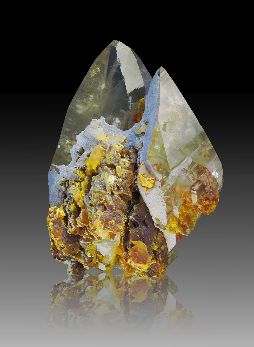 Wulfenit x von Tsumeb mit Ansicht der Vorder-und Rückseite: