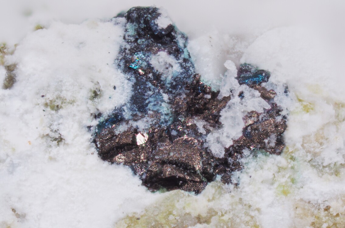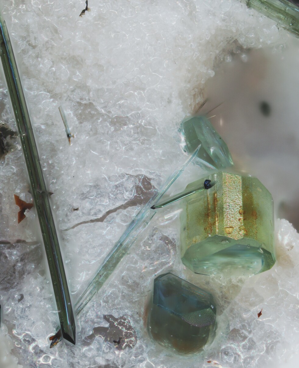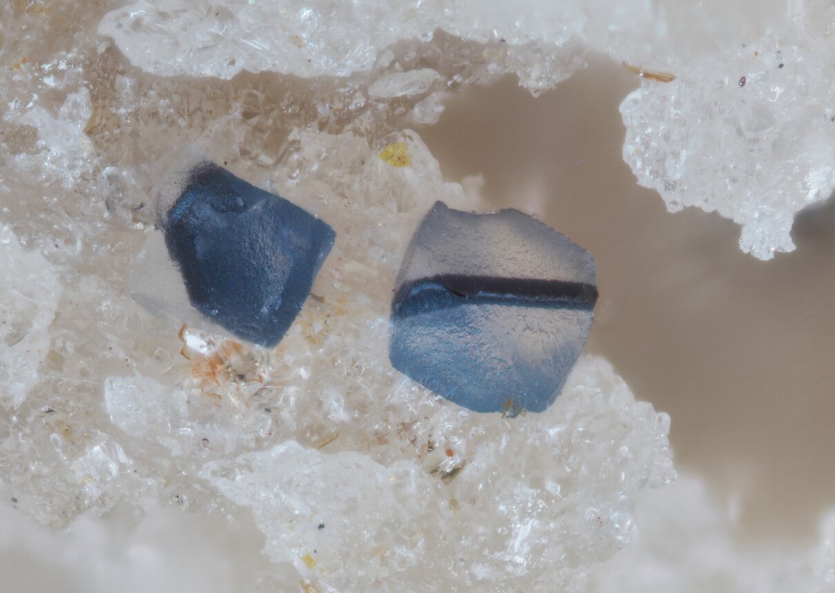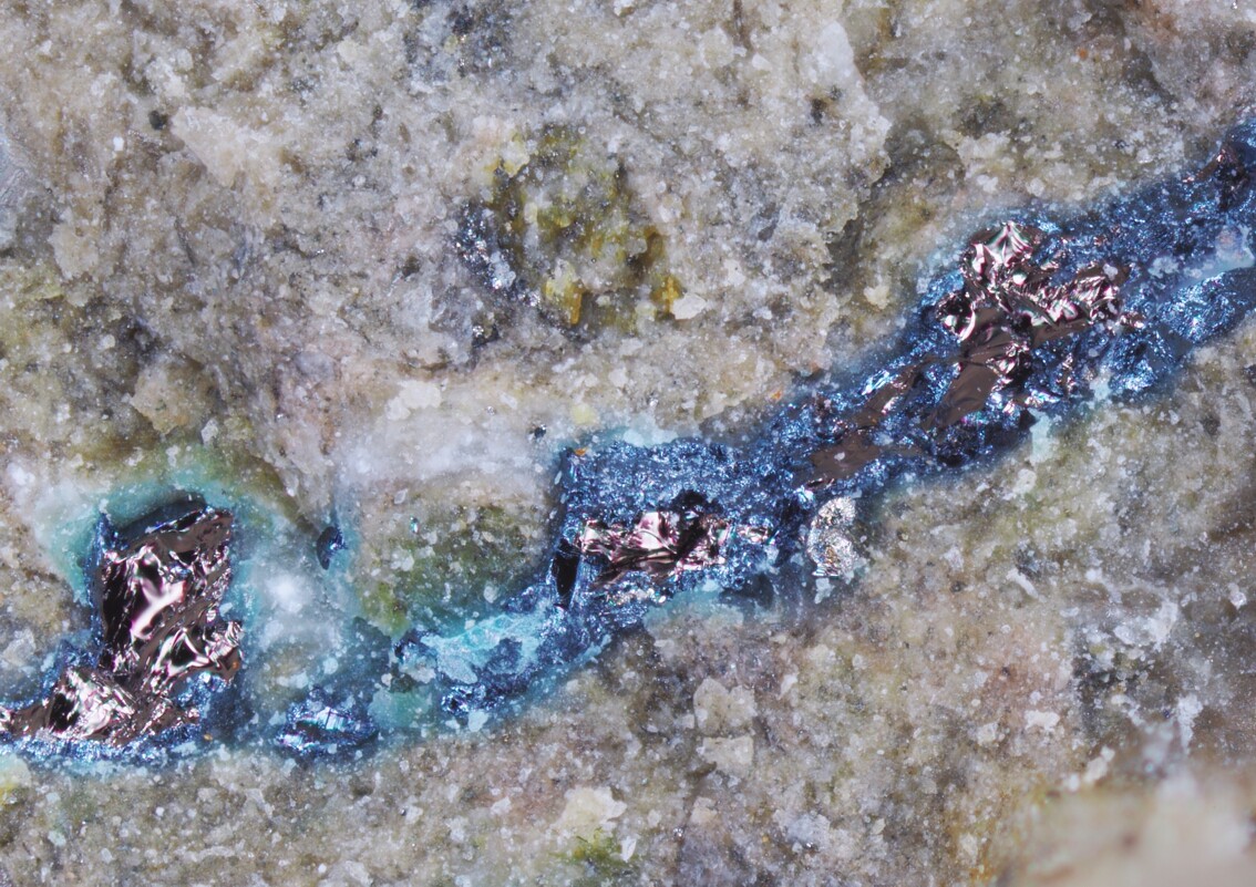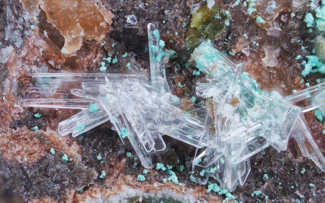 Die Kristalle sind zwischen 0,02mm und 0,09mm groß und mit Malachit vergesellschaftet.