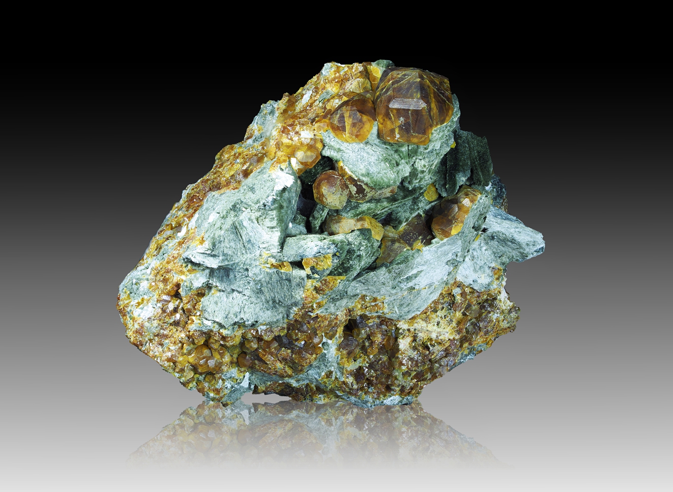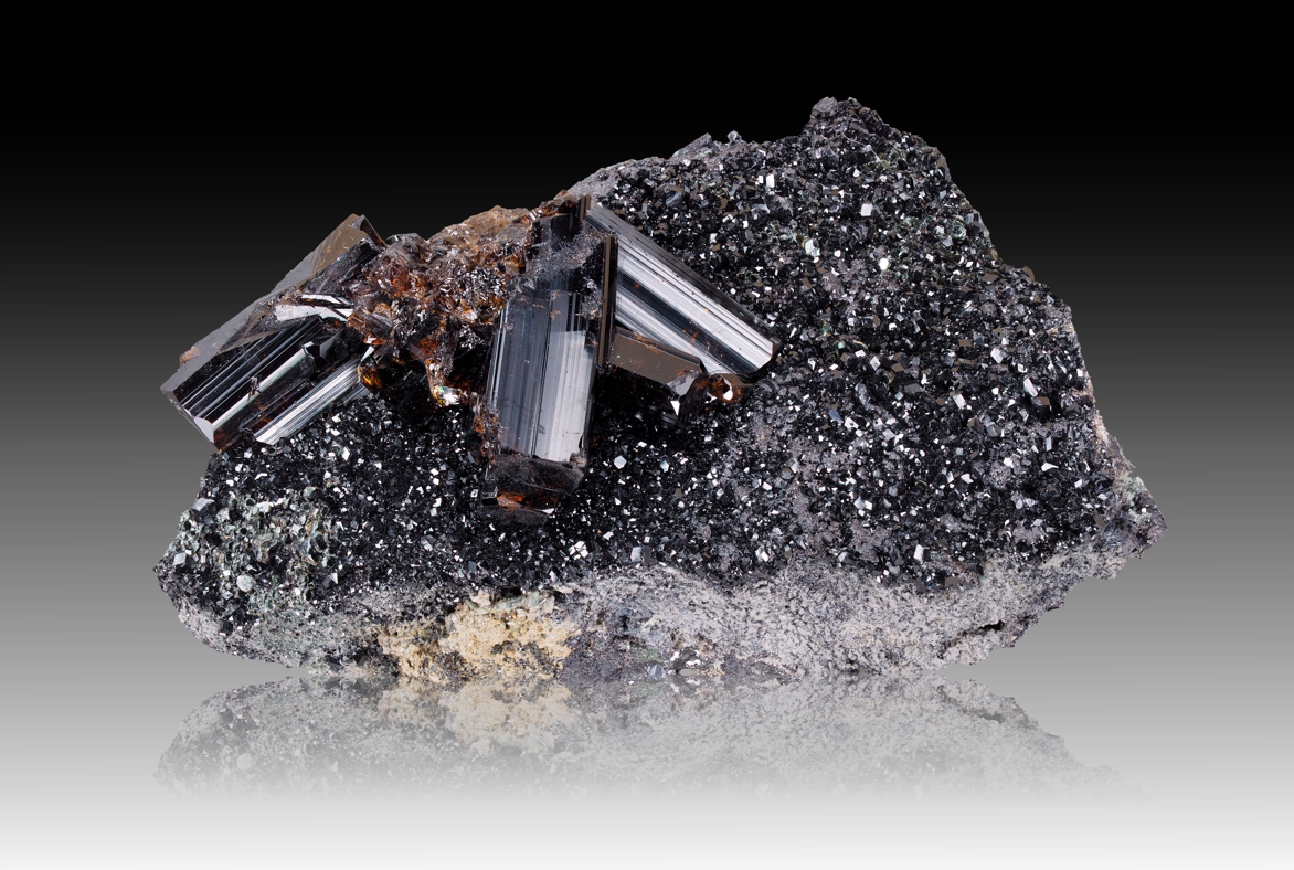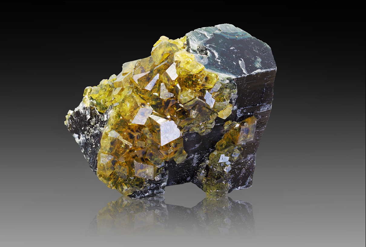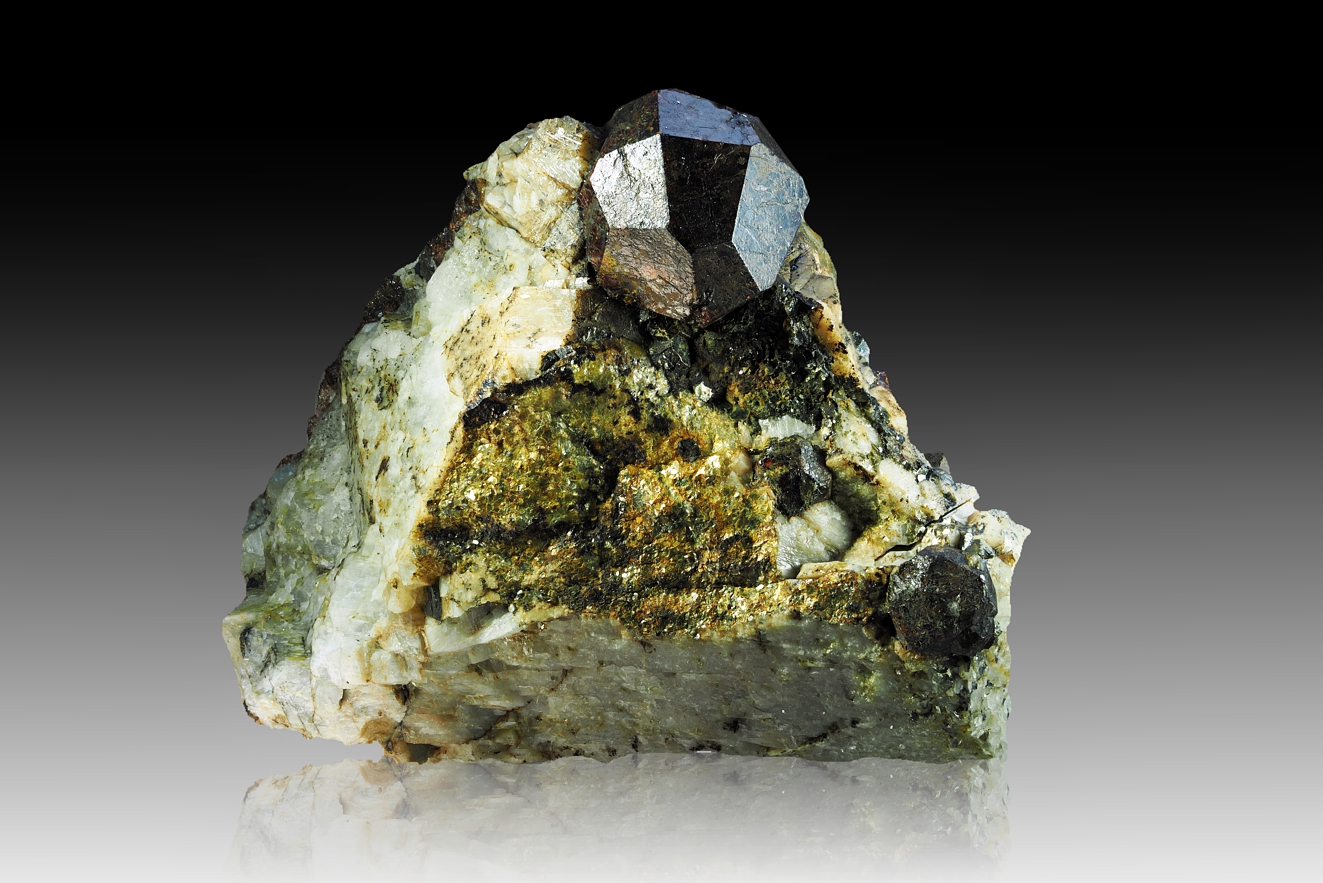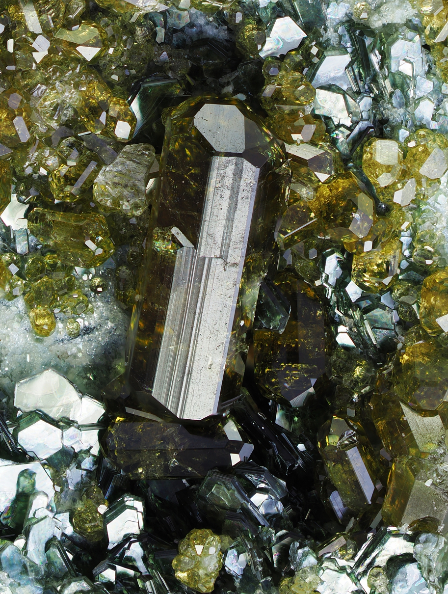Ich bezog mich nur auf den Kristall der Detailaufnahme … Pyrit ist metallisches Gold und Hämatit metallisches „Schwarz“. Auf der Insel Elba ist die Kombination aus Pyrit und Hämatit sehr verbreitet. Beide sind wahrscheinlich in deiner Muster vorhanden. Ich wollte nur das klarstellen.