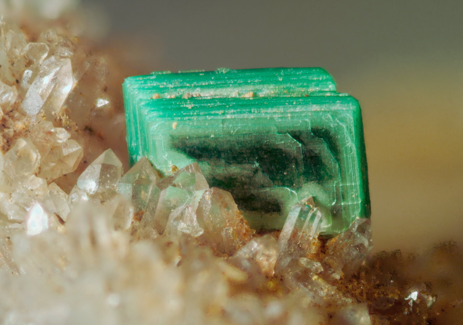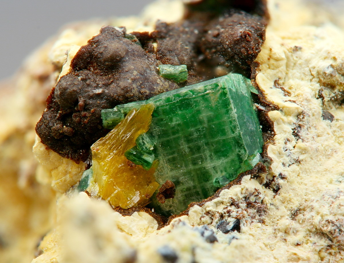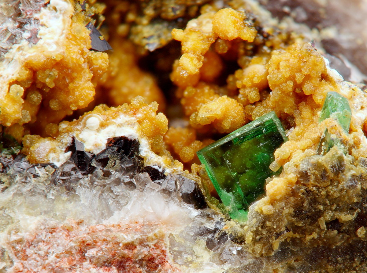 Erstaunlicheweise habe ich in der längeren Druse dann auch noch ein kleines, durchseinendes Täfelchen Torbernit gefunden.