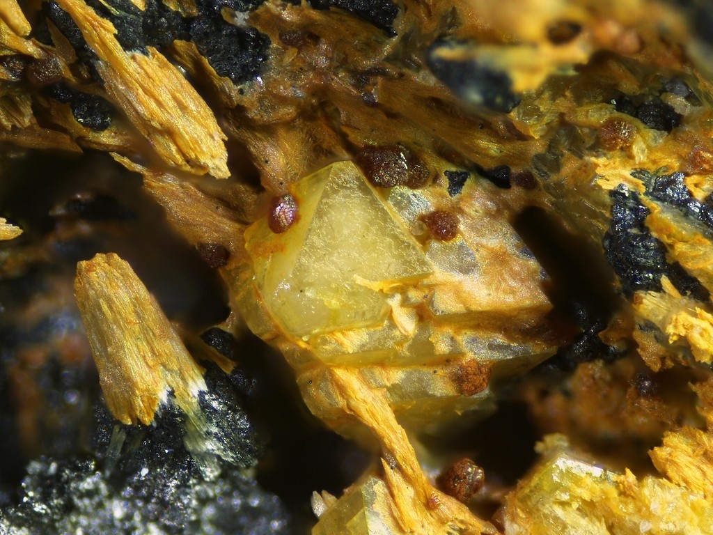 Baryt mit Agardit von der Grube Clara, Bildbreite 5,2mm und aus 13 Einzelbilder gerechnet.